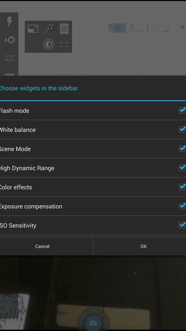 Posunutím prstu z levé strany displeje se vytahuje roletka s nastavením. Oproti starší verzi je toto zobrazení mnohem rychlejší k používání. Jednotlivé ikonky lze skrývat a na liště nechat jen ty, které využíváte. Zároveň můžete otevřít několik vlastností pro snímání zároveň – podstatně to urychluje práci s foťákem, všechny objekty jsou navíc poloprůhledné, takže lze zároveň sledovat dění na displeji.