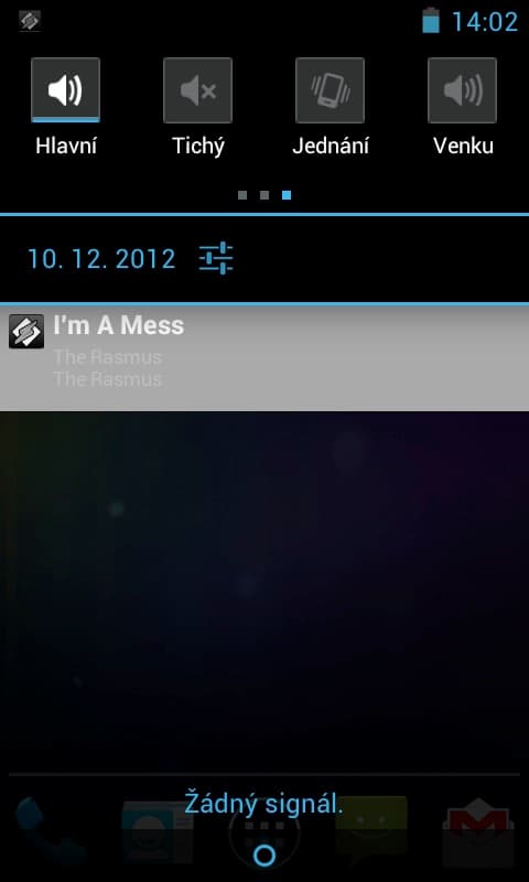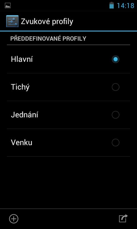 De facto se jedná o čistou verzi Androidu 4.0.x. Evolve totiž úpravy telefonu pojalo velmi minimalistky, což je jedině dobře. Telefon je tak ve svém prostředí velmi svižný a víceméně na nic nikdy nečekáte, byť HW výbava přístroje je spíše podprůměrná. Co musím každopádně vyzdvihnout a co zrovna upravené je vůči čistému Android, je notifikační lišta. Pokud jí stáhnete, objevíte totiž přepínače, a to ne ledajaké. Na první pohled je sice vidět klasická sestava přepínačů Wi-Fi, Bluetooth, GPS, datové připojení a mód letadlo, lišta jde ale posunout jak doleva, tak doprava. Vpravo tedy najdete profily, které si můžete upravovat dle svých požadavků, a to v sestavě Hlavní, Tichý, Jednání, Venku.
