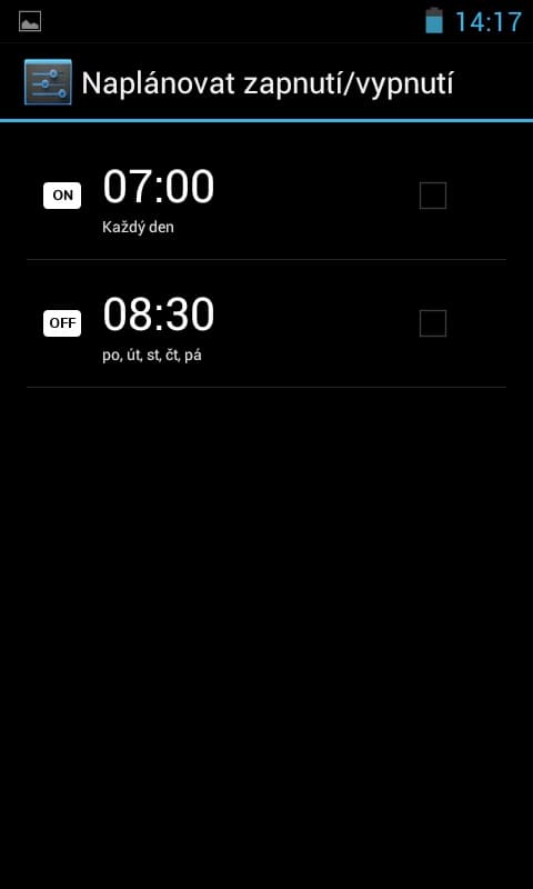 Co naopak v práci s baterií velmi prospěje, je ojedinělá volba zapnutí a vypnutí telefonu. Nemusíte tedy používat Flight mód proto, aby ráno fungoval budík. Necháte prostě mobil, aby se zapnul sám s dostatečným předstihem a poté se budík bez problému aktivuje. Díky tomu, že si lze vybrat přesně hodinu a minutu, kdy se mobil vypne a poté zapne, dokáže ušetřit další procenta z baterie. Na druhou stranu, nabíjení je velmi, velmi, velmi zdlouhavé. Nepamatuji si mobil, který bych do plného nabití musel nechat v zásuvce 4:27 hod. Ano, čtete správně. S originální nabíječkou, která je s telefonem dodávaná, trvá FX400 téměř čtyři hodiny a třicet minut, než se nabije. Během prvních třiceti minut je nabitý na 17%.