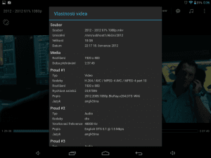 Videopřehrávač mě dost překvapil, jeho schopnosti jsou totiž poměrně obsáhlé. Dokáže pracovat s více zvukovými stopami, titulky, u kterým umí měnit barvu, zpoždění, velikost fontu či systém dekódování. Taktéž lze vybírat z několika zvukových stop, tak jako používat 3D mód, pokud máte adekvátní brýle. Celkově ale musím přehrávač hlavně pochválit za velmi dobrou schopnost práce s filmovými soubory. Na tabletu totiž přehrajete prakticky vše a pokud vezmete v potaz, že TM-7854 disponuje velmi povedeným IPS displejem, lze jej na sledování filmů bez jediného zaváhání doporučit. Pouze je škoda, jako u galerie, chybějícího českého překladu.