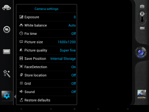Předně, oba fotoaparáty nedisponují moc širokoúhlým objektivem. U zadního fotoaparátu je to možná více-méně jedno, ale u předního se jedná o problém. Ruku s tabletem totiž musíte dát od těla dále než je záhodno, aby se vešel celý obličej na obrazovku. Díky tomu tablet dlouho neudržíte, za chvíli se totiž jeho váha začne v natažené ruce hlásit ke slovu. Přední kamera navíc při nedostatku světla brutálně vyhlazuje a tak místo obličeje čekejte parodii na váš vzhled, navíc v hodně tmavých odstínech. Při špatném osvětlení tedy krajně nepoužitelné.