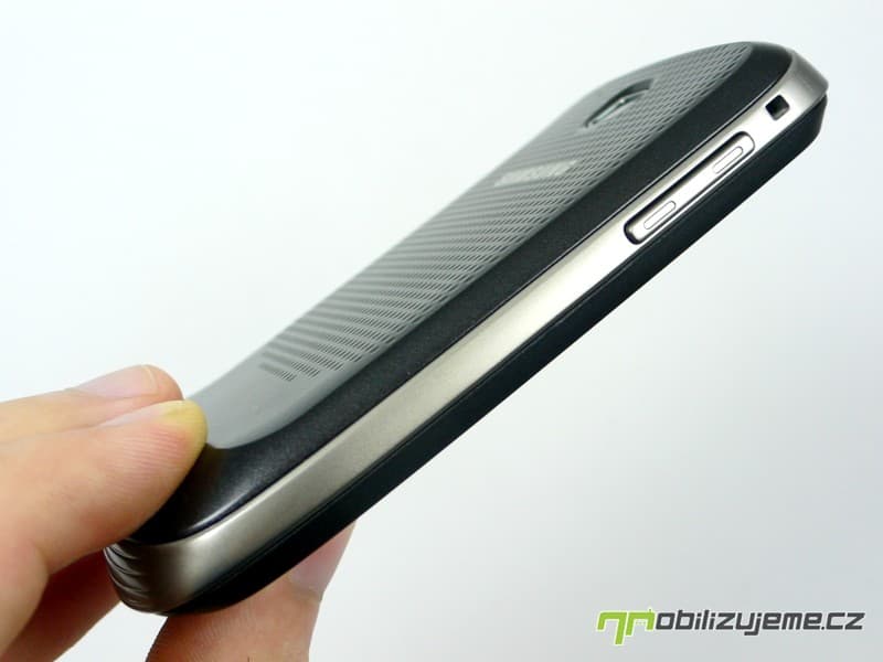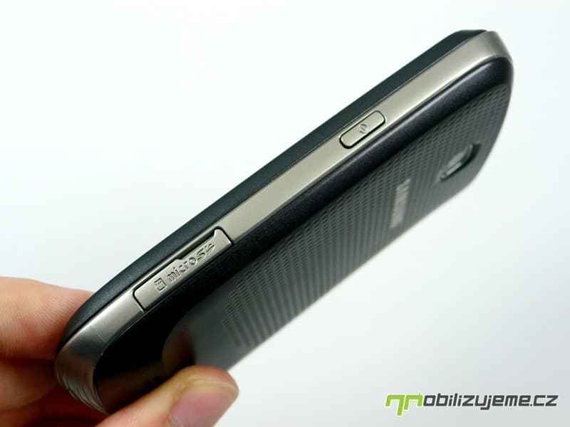 Na pravém boku je to z našeho pohledu na telefon tlačítko zámku displeje a vypnutí přístroje, a také slot na microSD kartu, opět chráněn krytkou. Na levém boku jsou tlačítka ovládání hasitosti a typický otvor pro poutko (provléct lze po sejmutí zadního krytu). Na spodku telefonu je pouze mikrofon.