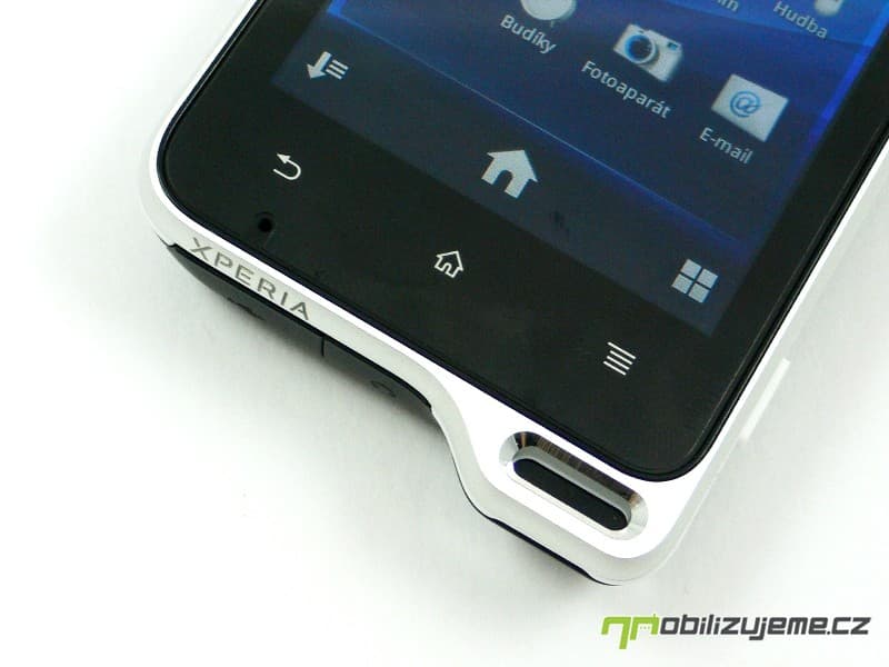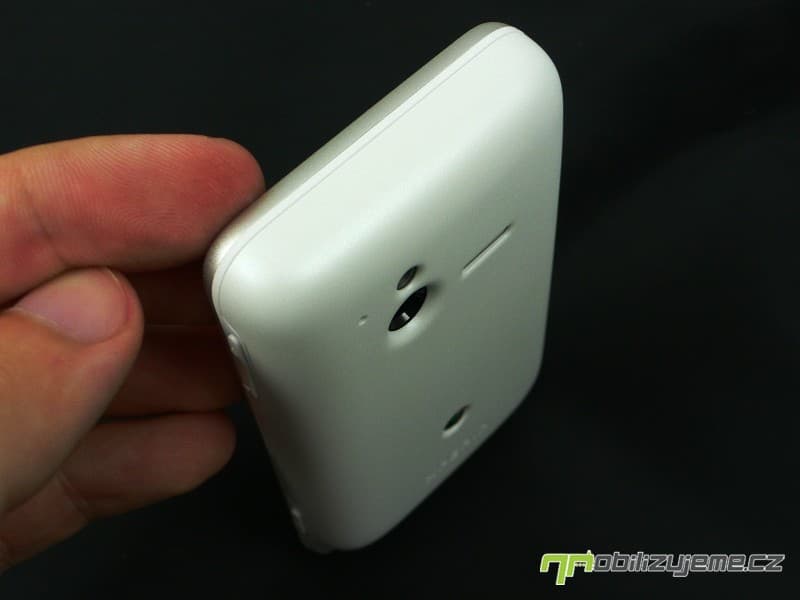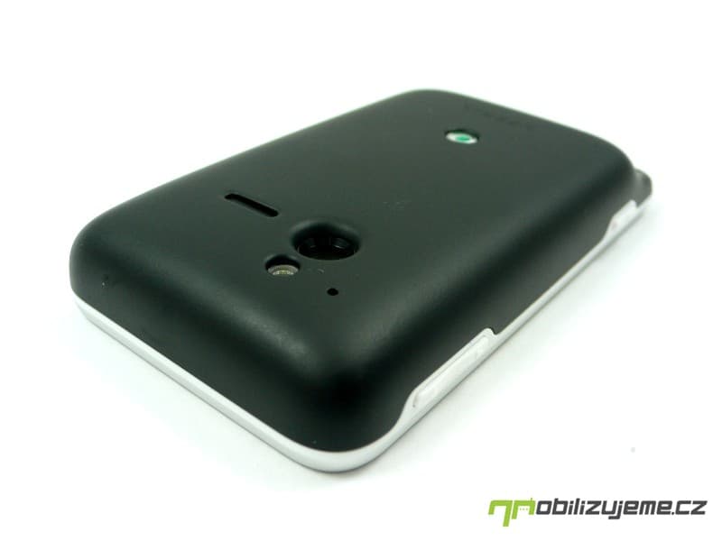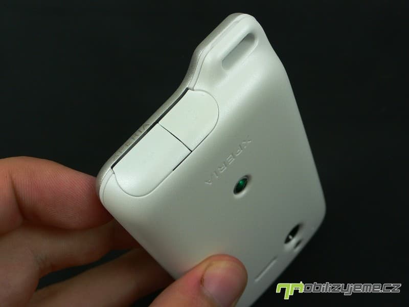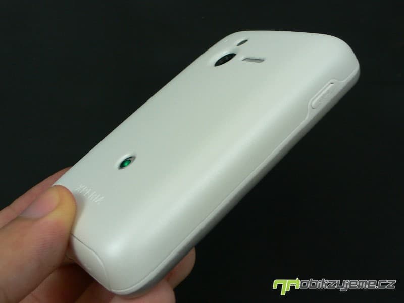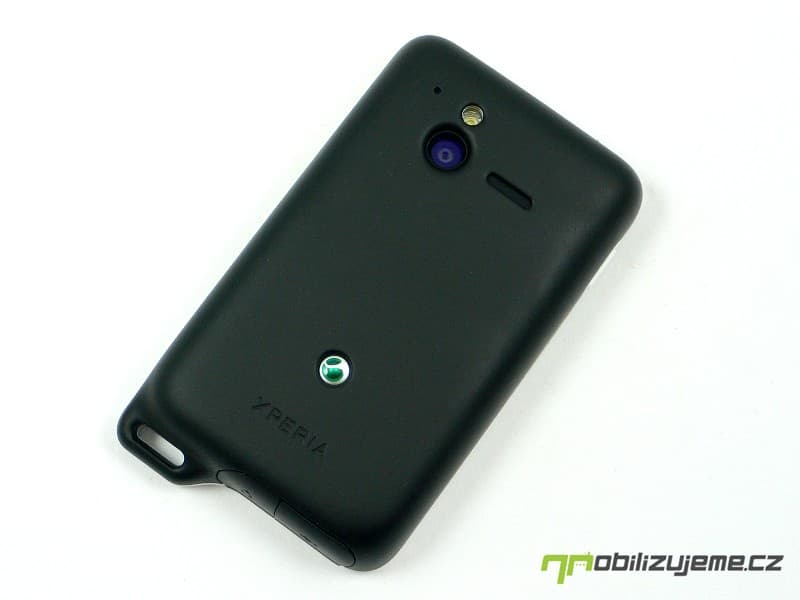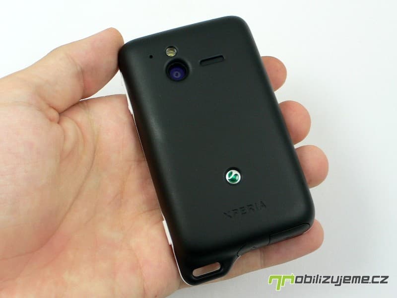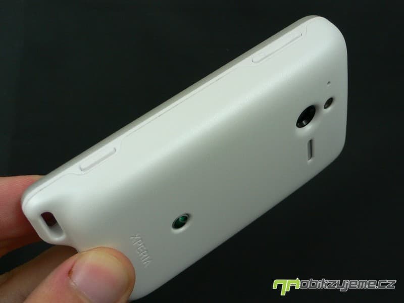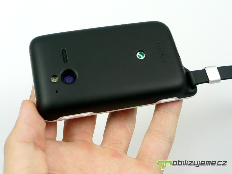 Zadní kryt nese otvor pro 5 Mpx fotoaparát, LED diodu a pod nepropustnou blánou schovaný reproduktor. Nechybí logo výrobce a zařazení do série XPERIA. Celkově mám z telefonu po konstrukční stránce jen kladné dojmy, jelikož působí opravdu pevně, nevrže, zároveň nevyklouzává z ruky (matný kryt). Telefon lze pohodlně ovládat správně rozmístěnými tlačítky. K odolnosti samotné se dostaneme později.