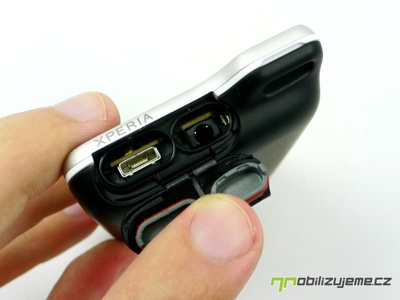 Zadní kryt lze sejmout tak, že využijeme zářez pro nehet na spodní hraně vystouplého oka a lehce celý kryt postupně odejmeme. Jde to překvapivě dobře, ale je dobré nejdříve otevřít krytky portů, ve kterých jsou gumové části. Na spodní hraně tak jsou vedle sebe umístěny porty – microUSB i 3,5 mm Jack. Vzhledem k menším netěsnostem pod krytkami portů bych raději nezkoušel „jen tak“ kropit telefon vodou, zdali to vydrží. Lehce můžete přijít o dvouletou záruku, a to se nevyplatí.