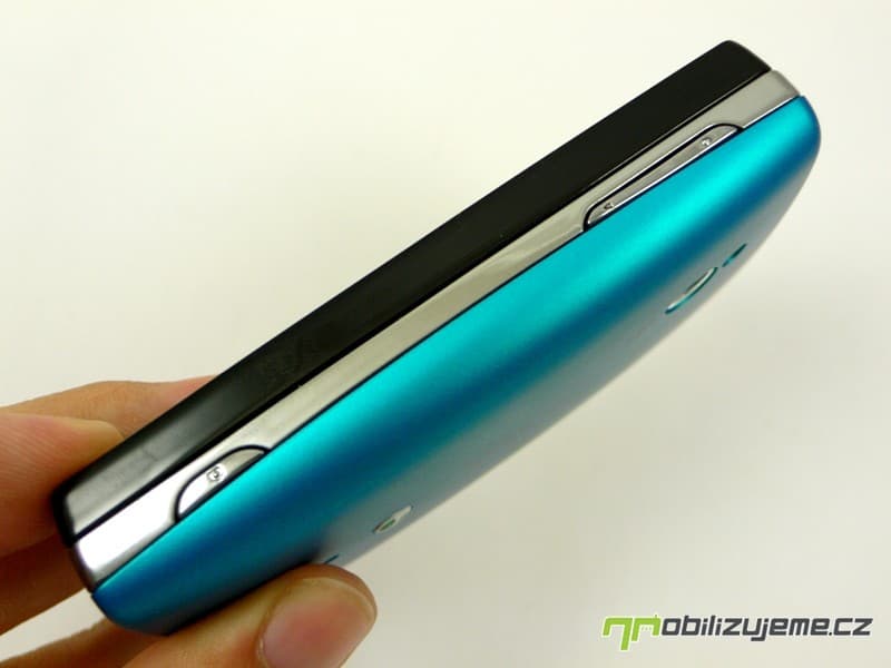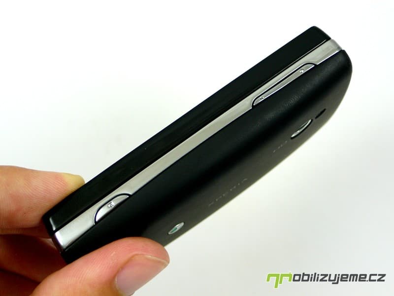 Vezměme to nyní od horní hrany telefonu, kde se nalézají všechny potřebné porty – 3,5 mm Jack i microUSB chráněné gumovou krytkou. Je zde také tlačítko zámku displeje a zároveň spuštění telefonu. Na pravém boku telefonu jsou v horní části tlačítka hlasitosti, slitá do jednoho, v dolní části pak hardwarové tlačítko fotoaparátu (dvoupolohové). Sony Ericsson se tak nepřipojuje k dalším výrobcům, kteří tlačítko neustále ignorují.