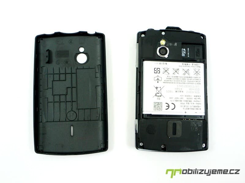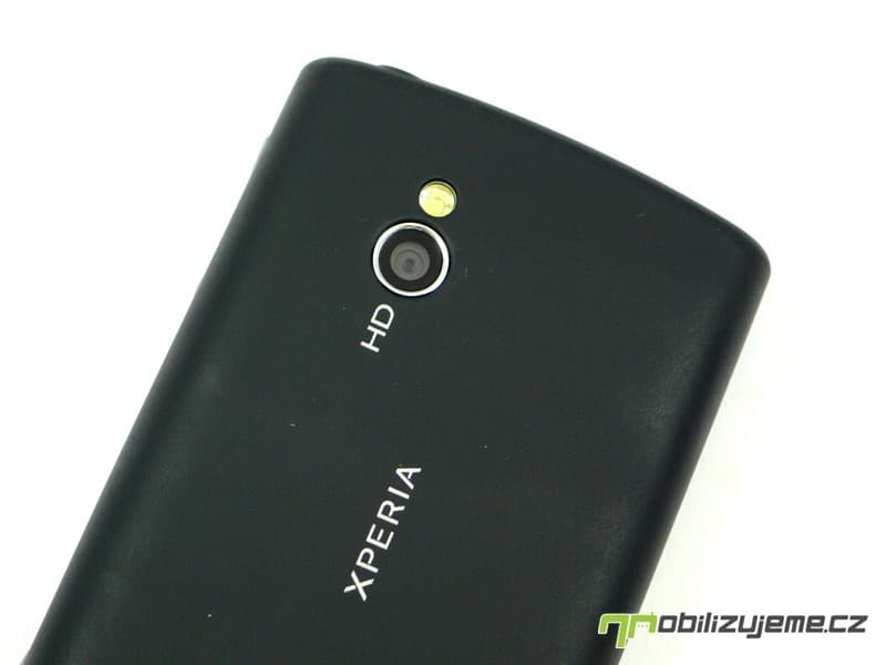 Na levém boku telefonu není žádné funkční tlačítko, a to ani v případě dolní hrany, kde však je úchyt pro poutko. Zadní strana patří fotoaparátu s LED diodou a prořezu v krytu, kde se nalézá reproduktor. Typické logo výrobce a označení XPERIA je symbolem chytrých telefonů s Androidem u Sony Ericssonu.
