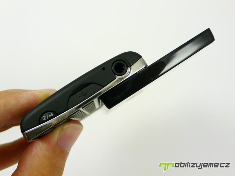 Baterie je překvapivě typu Li-Pol, s udanou kapacitou 1200 mAh. Výrobce prezentuje možné výdrže takto: v pohotovostním režimu až 340 hodin, čas volání až 5,5 hodiny, výdrž při přehrávání hudby až 29 hodin. K SIM kartě se dostanete až po vyjmutí baterie, zatímco microSD slot je dostupný ihned po sejmutí krytu.