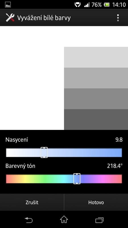 V celém prostředí je nyní u některých prvků černá barva skutečně černá, nejde jen o tmavě šedivou, což působilo dojmem, jako kdyby byl displej Xperie Z horších kvalit než např. AMOLED displeje. Jistě, že AMOLED displeje stále produkují lepší černou barvu, ale bez přímého srovnání je to již prakticky nepostřehnutelné. Dále výrobce přidal možnost vyvážení bílé barvy displeje – nastavit si můžete nasycení a barevný tón. Díky tomuto si každý majitel Xperie Z může nyní vyladit displej podle svého gusta.