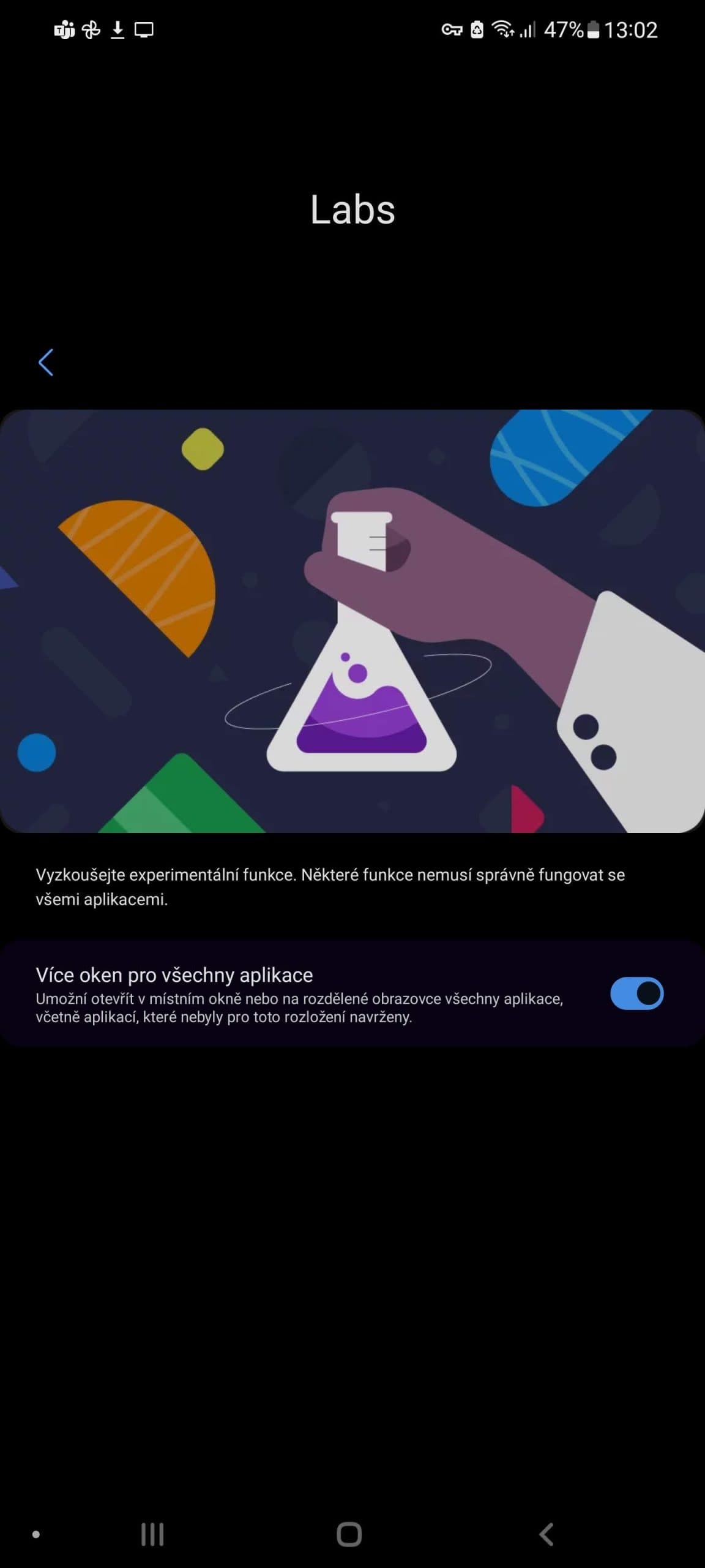Běžně Android ukazuje jedinou aplikaci na obrazovce, případně umožňuje rozdělit dění do dvou sekcí. Samsung ale umí pracovat s několika okny zároveň, a to i v aplikacích, které běžně režim rozdělené obrazovky nepodporují, což však musíte aktivovat v sekci Labs.