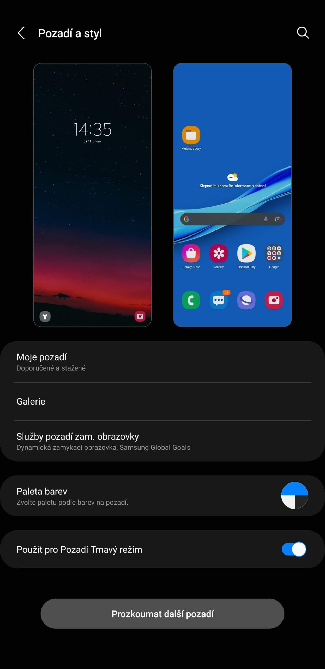 Samsung tohle umí. Nejen, že v Androidu 12 podporuje dynamická témata využívající palety tapety, nejen, že si grafická témata můžete stahovat v Galaxy Store, ale v modulu Theme Park pro Nicelock můžete přebarvit třeba i notifikace. A pokud by ani to nestačilo, vždycky je tu v záloze Hex Installer.