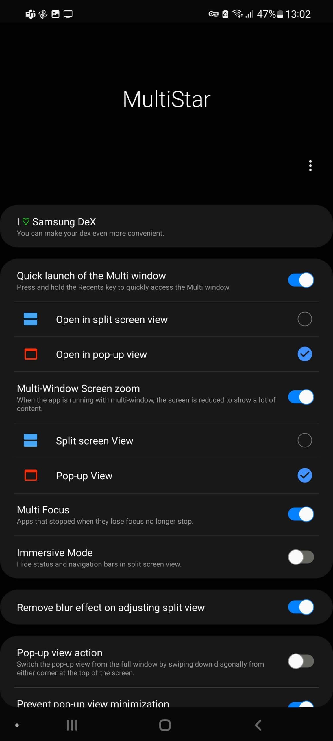 Ještě lepší multitasking získáte, pokud si v aplikaci Goodlock, případně Nicelock, povolíte modul Multistar, který umožňuje rozdělit i focus mezi aplikacemi nebo zrychlit aktivaci plovoucích oken. Pak vám nic nebrání třeba během hry, která se “hraje sama” brouzdat po sociálních sítích.