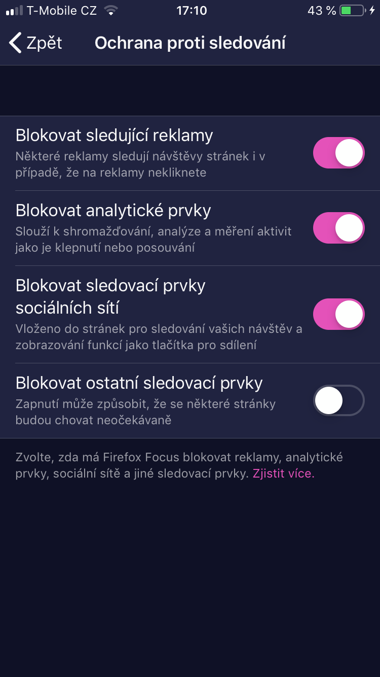Mobilní webový prohlížeč Firefox Focus musí mít v mobilu každý milovník soukromého brouzdání po internetu, které navíc není rušené nežádoucími reklamami. Tento fialový prohlížeč vám zaručí naprostou anonymitu a bezpečnost tím, že vymaže vaše záložky, cookies, hesla a historii vyhledávání. Na vámi vyhledávaných webových stránkách blokuje veškeré reklamy a sledující nebo analytické nástroje. Firefox Focus také podporuje integraci s jablečným prohlížečem Safari, takže majitelé Apple zařízení mohou nerušeně brouzdat i přes svůj oblíbený prohlížeč.