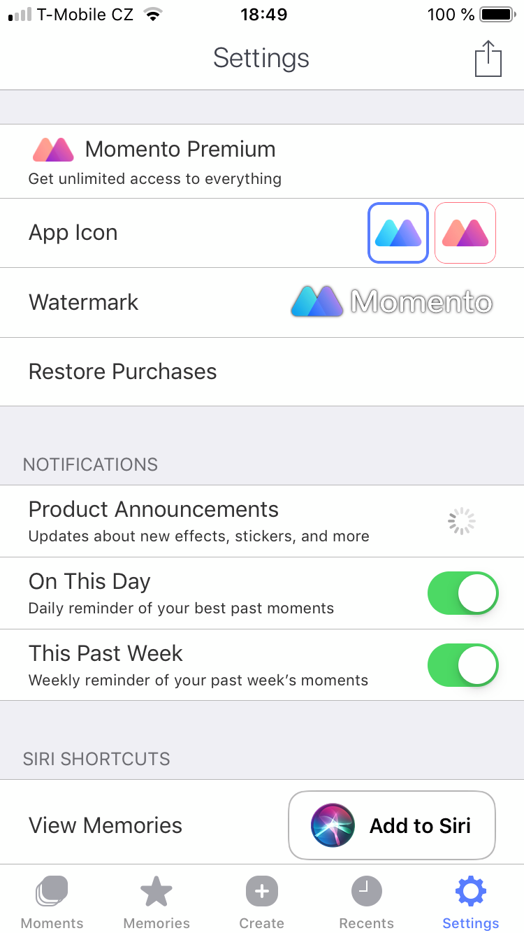 Appka Momento dokáže z momentek udělat ještě krásnější vzpomínku. Ze série fotek, které si vyberete z galerie nebo vyfotíte přímo v aplikaci, vytvoří GIF obrázek. Ten pak můžete následně vyšperkovat různými filtry, efekty, rámečky nebo hudbou. Ne všechny nabízené úpravy jsou však zadarmo. Aplikace má svou prémiovou verzi, za kterou budete muset platit 279 korun měsíčně. Možnost je také jednorázové koupě, které vám vezme z kapsy docela mastnou částku, a to 2 090 korun.