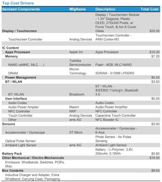 Základní verze chytrých hodinek Apple Watch Sport se prodává za 349 dolarů, přitom součástky včetně práce vyjdou jen na zhruba 84 dolarů. Své první hodinky tak Apple prodává za více než čtyřnásobnou cenu, což je nový rekord ze všech kdy prodávaných Apple produktů.