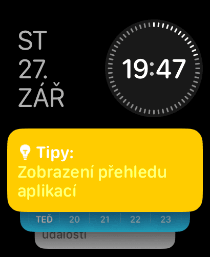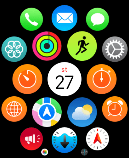 Po stisku digitální korunky následně zobrazíte menu aplikací. Po aktualizaci již nemá design „včelího úlu“, ale kulaté ikonky aplikací jsou v řadách a pod sebou. V nastavení ale nechybí ani možnost zvolit klasický seznam aplikací.
