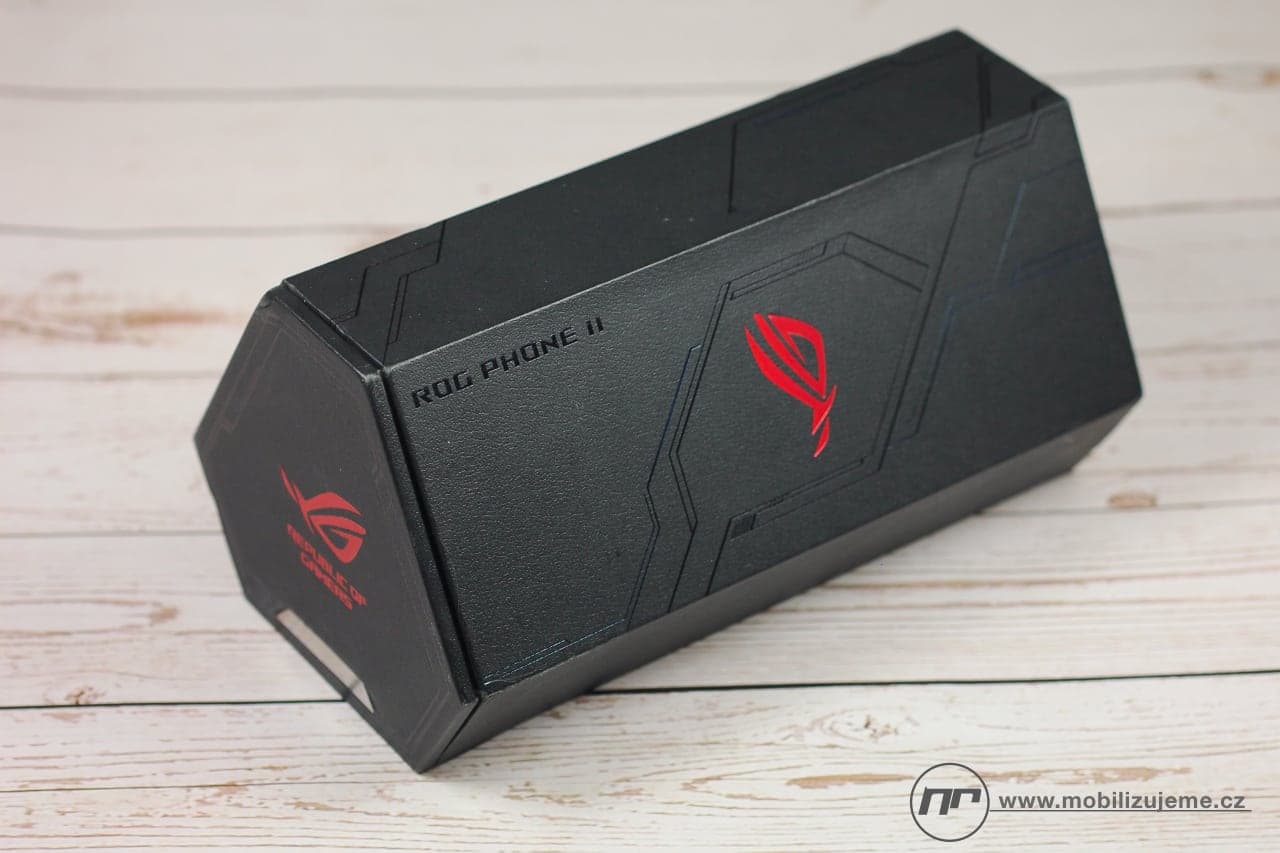 Na první pohled vás zaujme stylová šestistěnná krabička v černém matu se sytě červeným poznávacím logem Republic of Gamers (dále jen ROG) po stranách. Když ji otevřete, nevykoukne na vás jen telefon, ale také speciální kryt, 30W nabíječka, jehla na SIM kartu, textilní kabel s USB-C koncovkou na obou stranách a přídavný větráček Aeroactive Cooler II. Design je u herních zařízení na prvním místě, a jakmile z ní novinku vytáhnete, během vteřiny vám bude jasné proč.