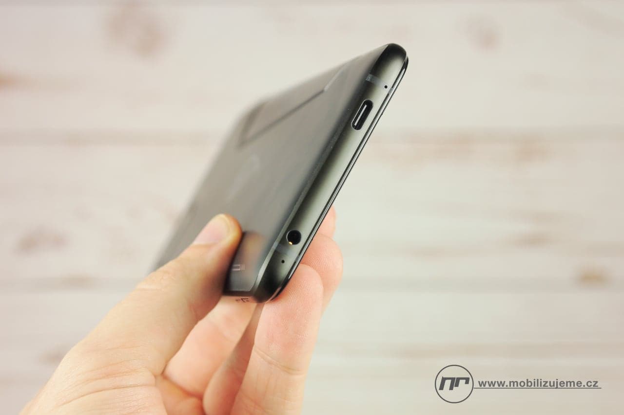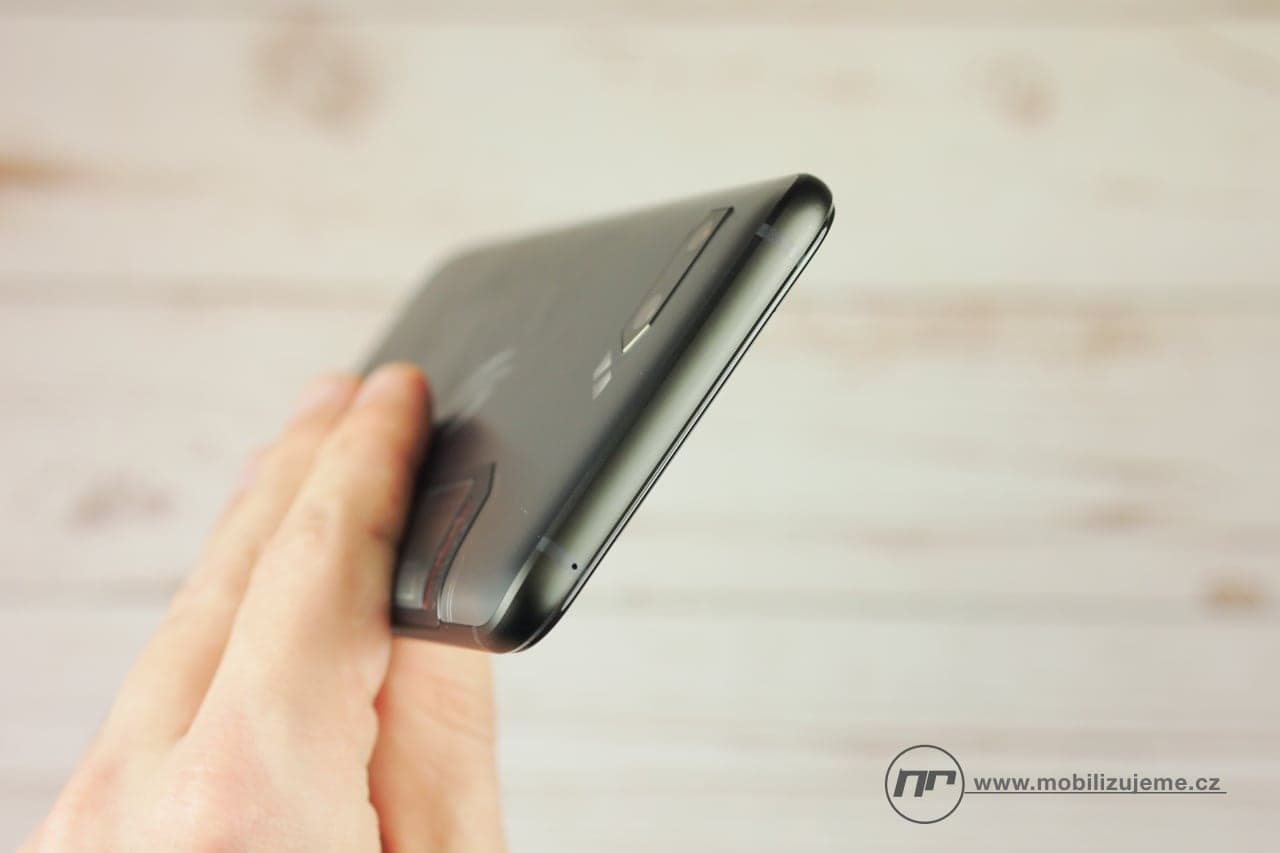 Ten je chráněný gumovou záslepkou, která se docela špatně vytahuje a navíc není k tělu ničím přichycená, takže musíte dávat pozor, abyste ji neztratili. Jeho výhodou je i to, že jej můžete využít k nabíjení telefonu aniž by vám kabel během hraní překážel. Na spodní straně rámu vlevo je už pak jen další USB-C napájecí konektor a vpravo jinými výrobci opomíjený 3,5mm audio jack.