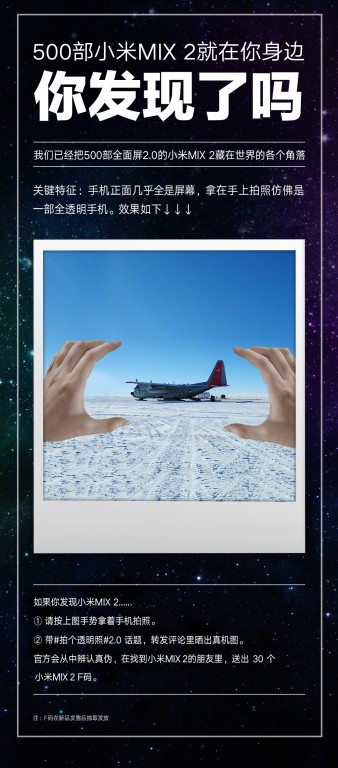 Hlavním tématem promo kampaně jsou úzké rámečky displeje, které znamenají, že když v telefonu zapnete aplikaci fotoaparátu, je samotné zařízení téměř neviditelné.