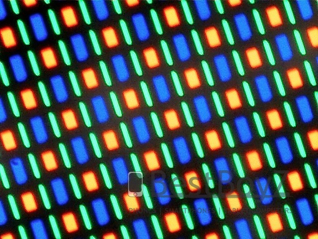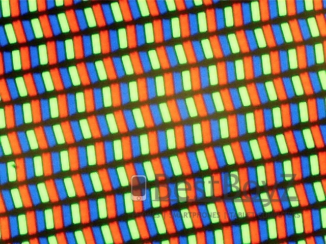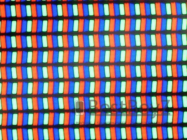 Jako druhý se pod hledáčkem mikroskopu ocitl HTC One S, který pro změnu nabídne 4,3″ qHD (540 x 960 px) Super AMOLED panel. Díky tomu se potvrdila původní domněnka, že použitá matice je typu Pen Tile RGBG namísto klasické RGB matice. Pen Tile matice však byla bohužel často kritizována za hrubý rastr, především při zobrazování úhlopříčných přímek a tvarů. Uvidíme, zda se tento neduh bude objevovat i zde.