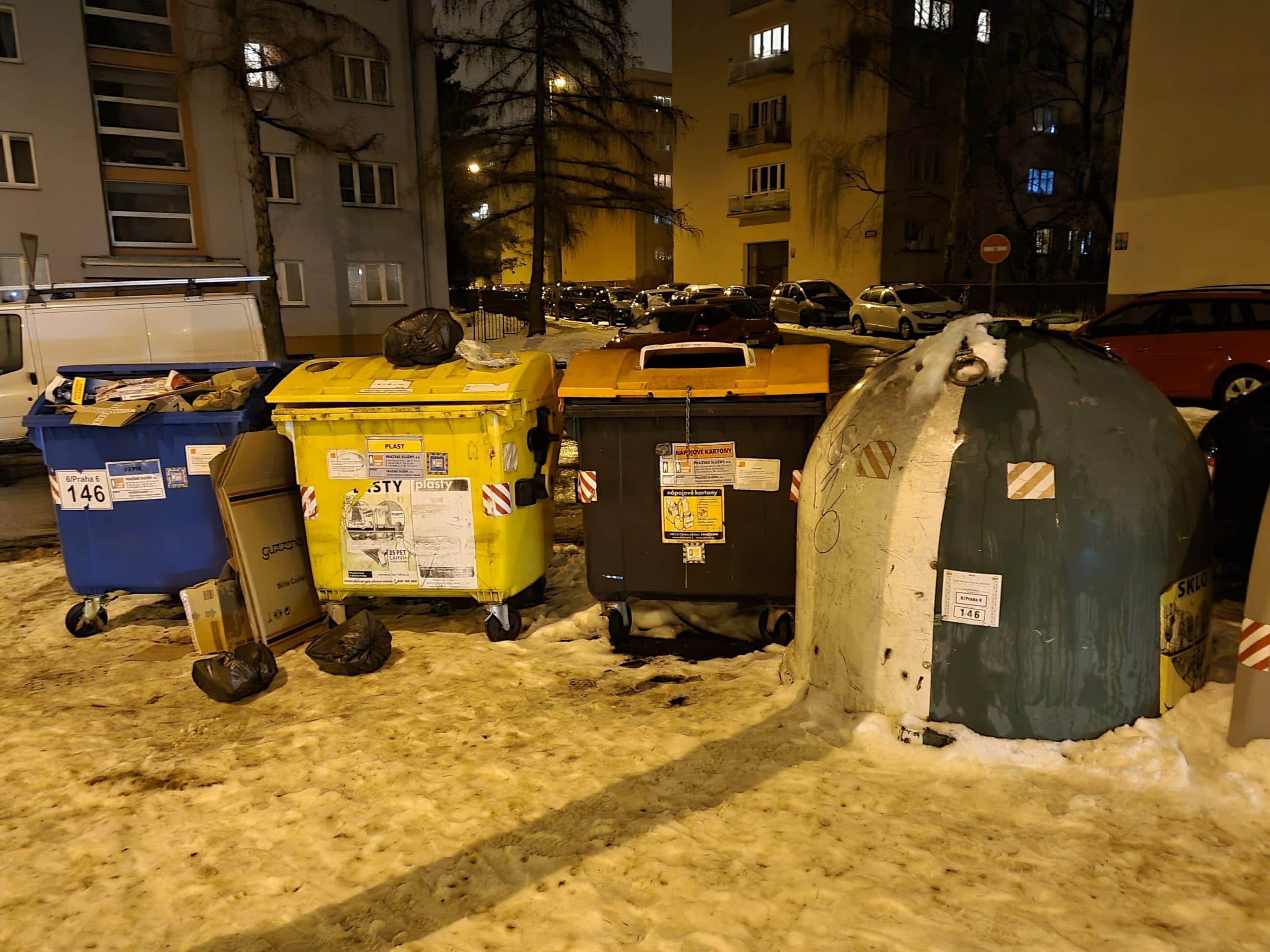 To z mého pohledu dokáže zařídit víc S21. Sice jdou fotky do žluta, ale díky tomu jsou noční snímky vlastně světlejší a v jednoduchosti se dá říct, že toho vidíme víc. Nejlépe je to patrné u snímků kontejnerů na tříděný odpad. Nakonec, posuďte sami…
