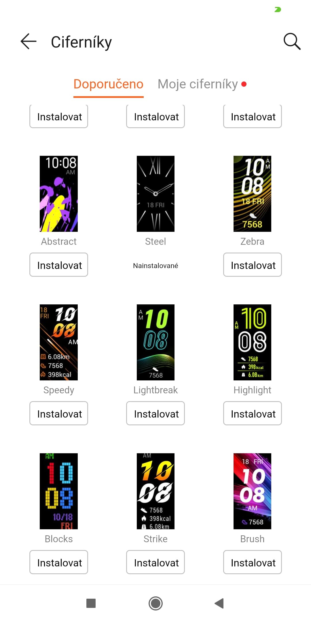 Oceňuji širokou škálu ciferníků, kterých je nespočet. Předinstalovaných ciferníků je šest, v aplikaci si ale můžete několik desítek dalších vybrat a stáhnout dle libosti. Po stažení dojde k automatické synchronizaci a ciferník se nastaví. Máte rádi klasický styl nebo digitální styl? Není problém, styl ciferníku si vybere opravdu každý. Mě osobně nejvíce vyhovovaly ciferníky, kde je na úvodní obrazovce také informace o stavu baterii a počasí. Ne každé totiž tuto informaci zobrazují.