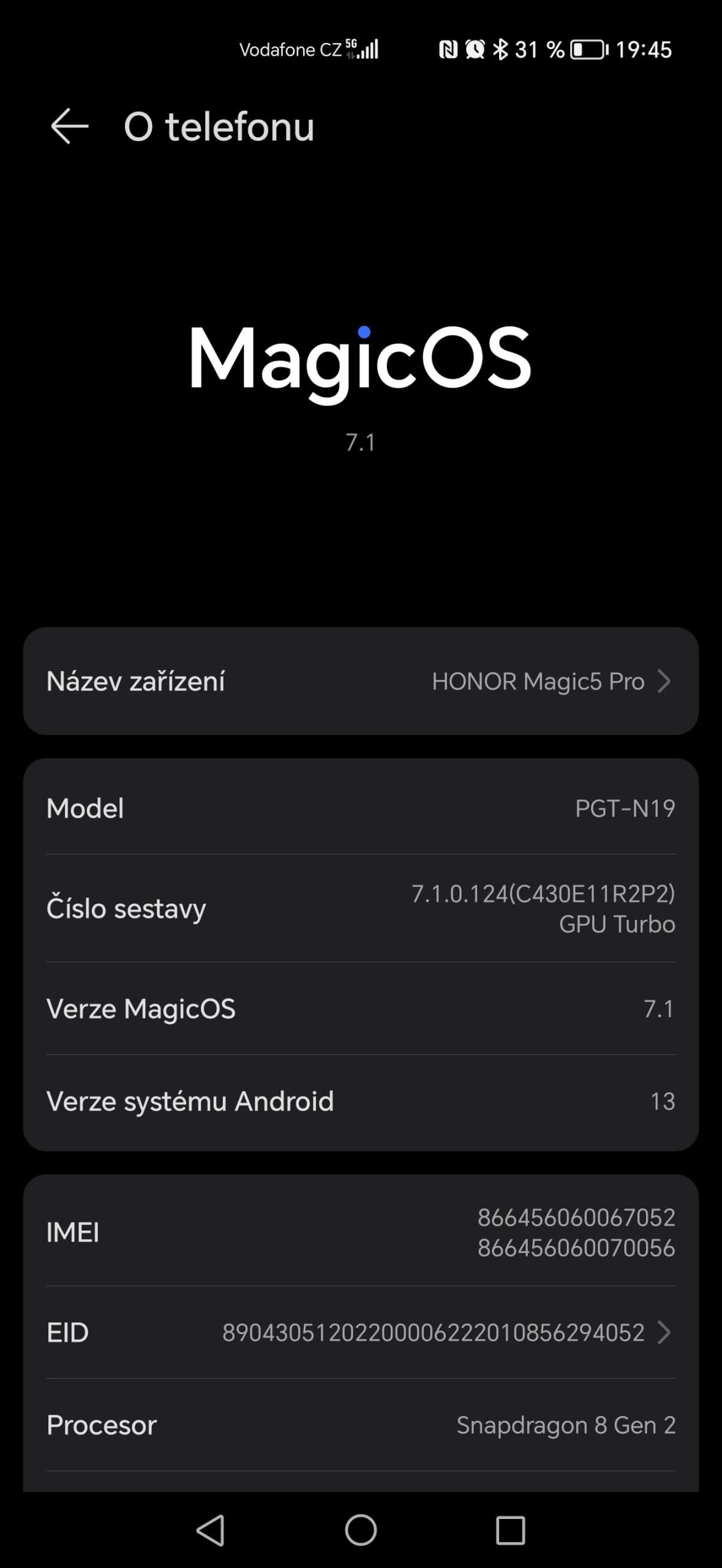 | Operační systém | Android 13 + Magic UI 7.1 |