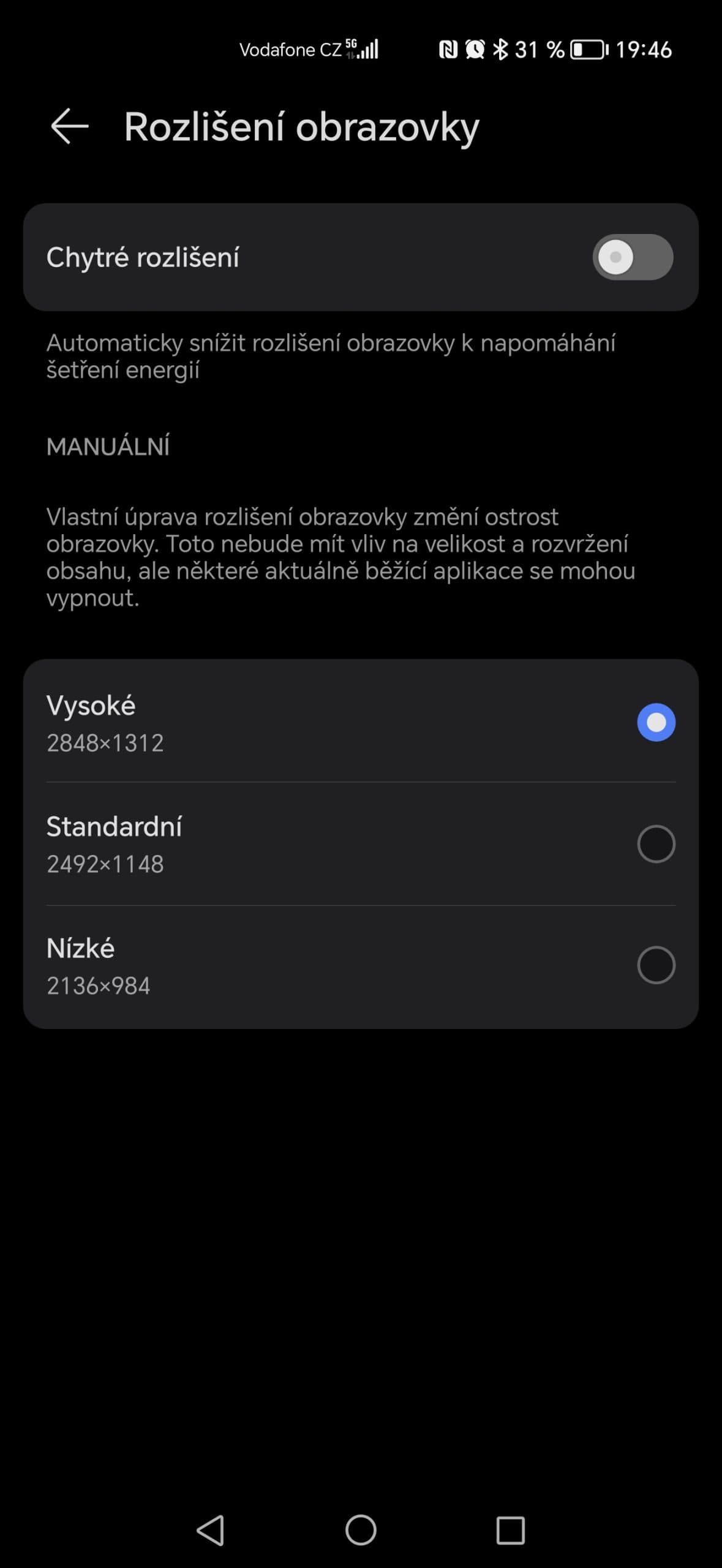 A tu má také za displej. Ten je, dle serveru DxOMark, nejlepší mezi všemi současnými telefony a pod to se klidně podepíšu. Na čelní straně se nachází 6,81palcový OLED panel s LTPO technologií, maximální frekvencí až 120 Hz a rozlišením 2848 × 1312 pixelů. Díky takto vysokému rozlišení dosahuje obraz skvělé ostrosti o hodnotě 460 ppi a samotné rozlišení si lze nastavit ve čtyřech režimech – 2848 × 1312 pixelů, 2492 × 1148 pixelů, 2136 × 984 pixelů, nebo to nechat na telefonu, který umí rozlišení v případě potřeby snížit (funkce Chytré rozlišení).