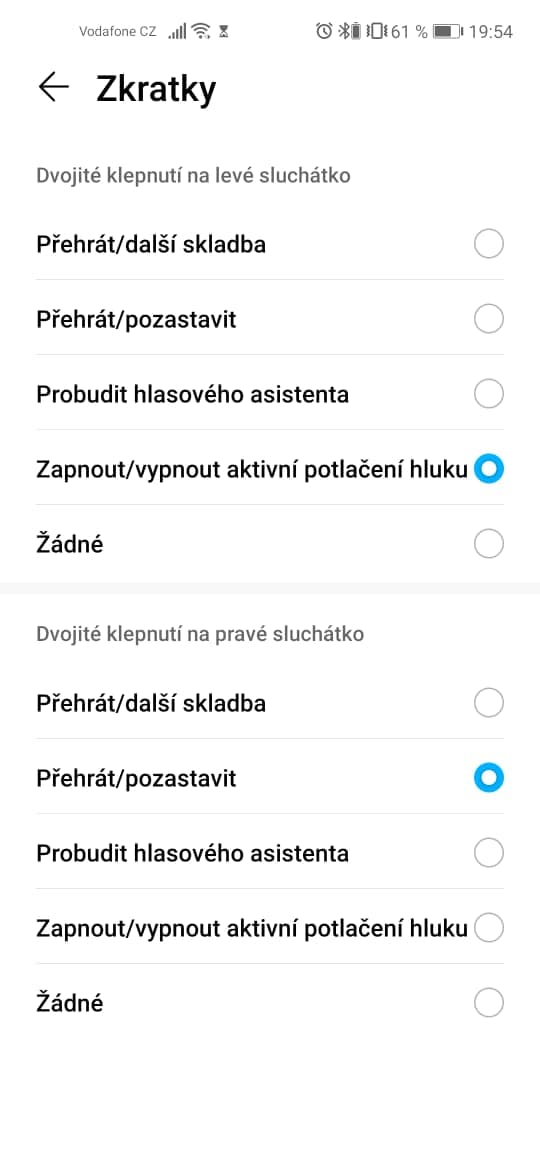 Opomenout bychom neměli ani aplikaci Huawei AI, kterou najdete pro Android; konkurenční iOS bohužel musí utřít nos. Aplikace ale k pohodlnému používání není potřebná: dokážete v ní nastavit volbu dotykového gesta sluchátek, případně onen aktivní noise cancelling. Jinak je aplikace Huawei AI spíše příjemným zpestřením než nutností.