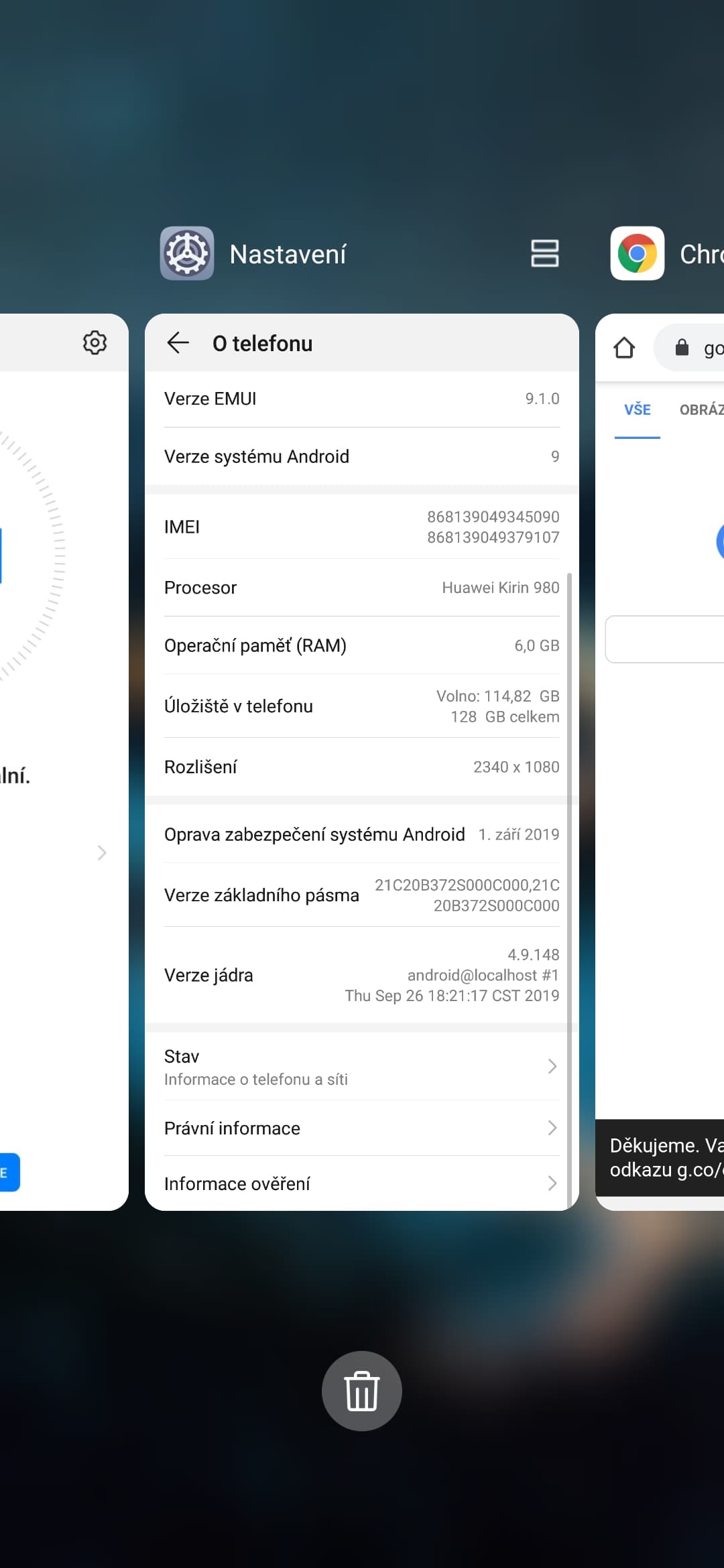 | Operační systém | Android 9 Pie + EMUI 9.1.1 |