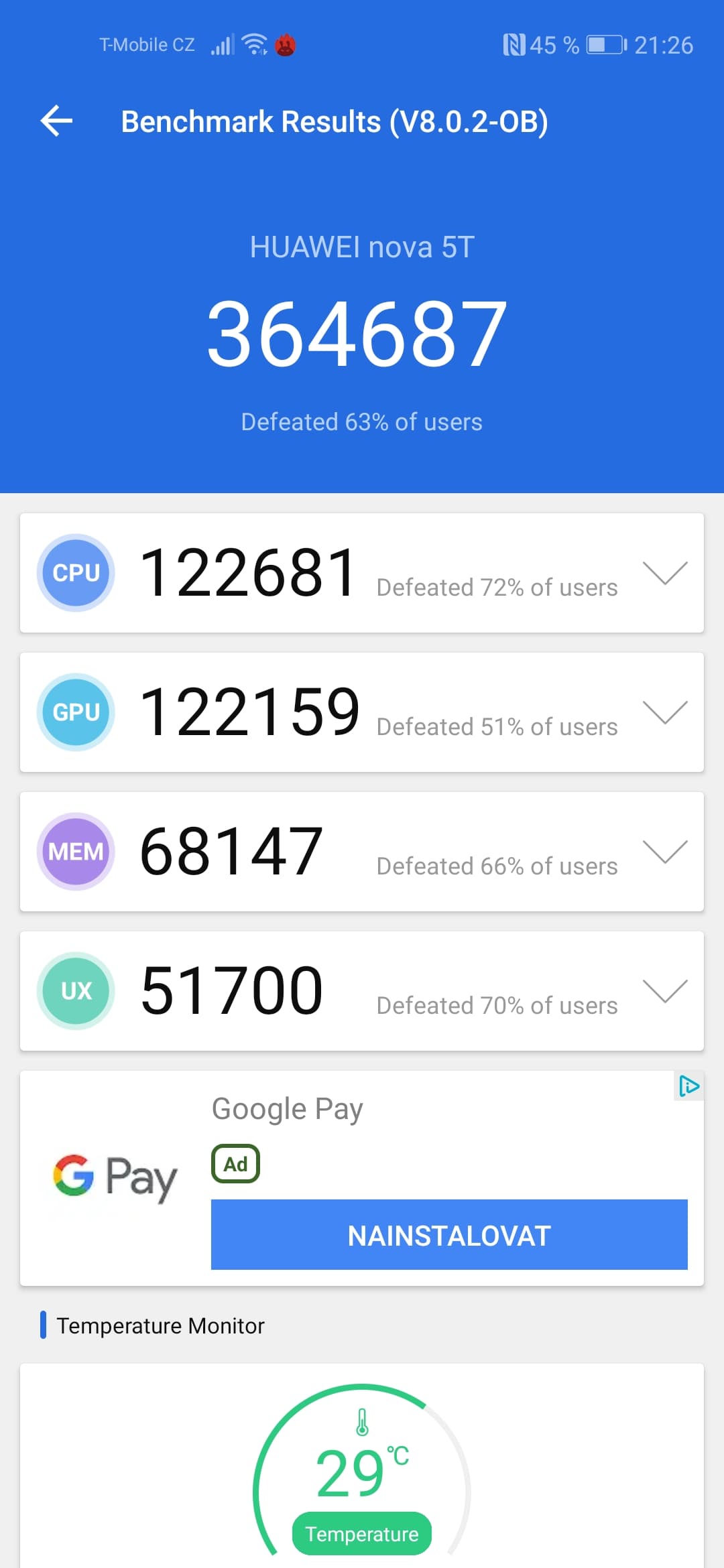 To jen potvrzuje, že Nova 5T šlape opravdu naprosto skvěle. Rovněž potěší i implementovaná funkce AppAssistant, která je takovou hodně zjednodušenou verzí herního módu. U vámi vybraných her dokáže výrazně zvýšit výkon pouhým jedním kliknutím nebo naopak například vypnout rušivá upozornění během hraní. Chod telefonu je celkově opravdu velmi plynulý a za to Huawei chválím.