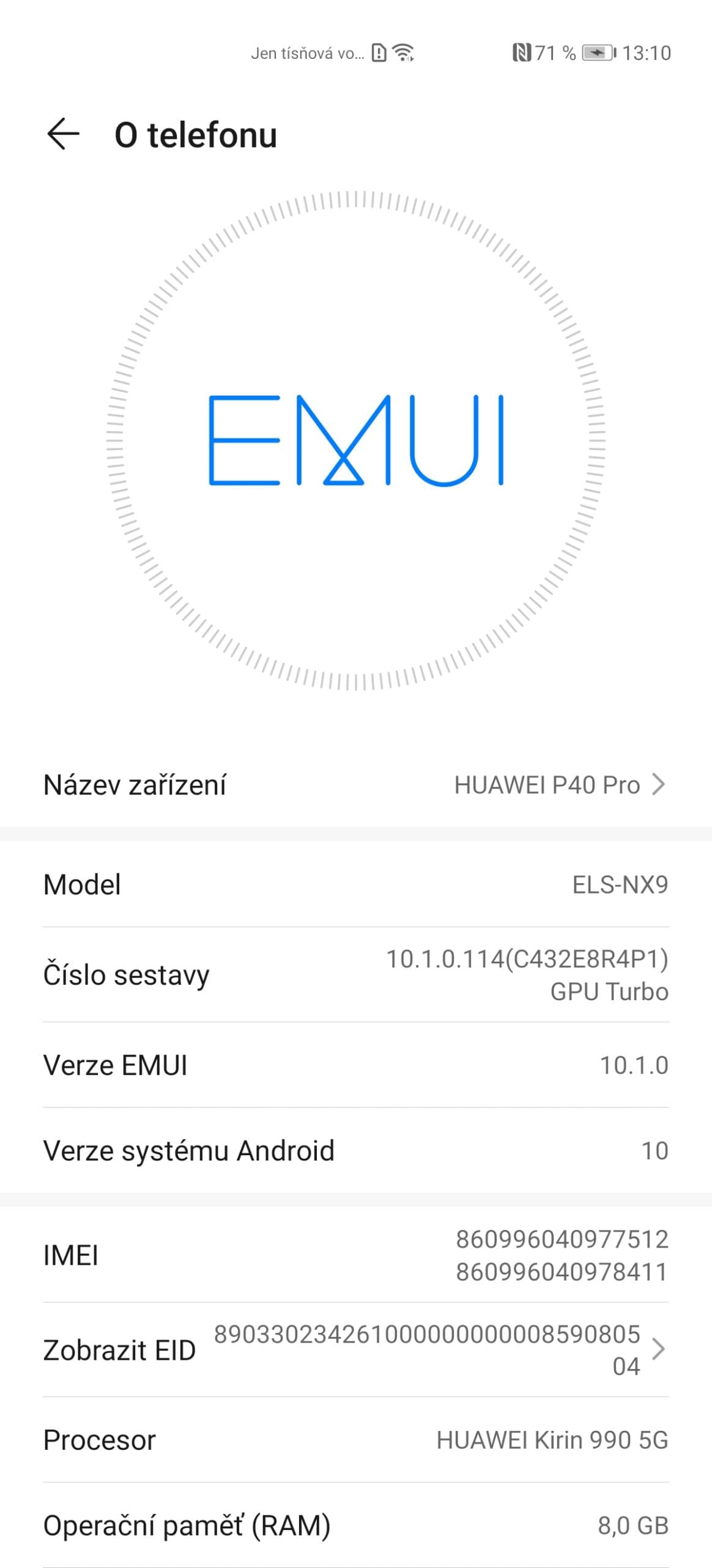 | Operační systém | Android 10 (bez GMS) + EMUI 10.1 (HMS) |