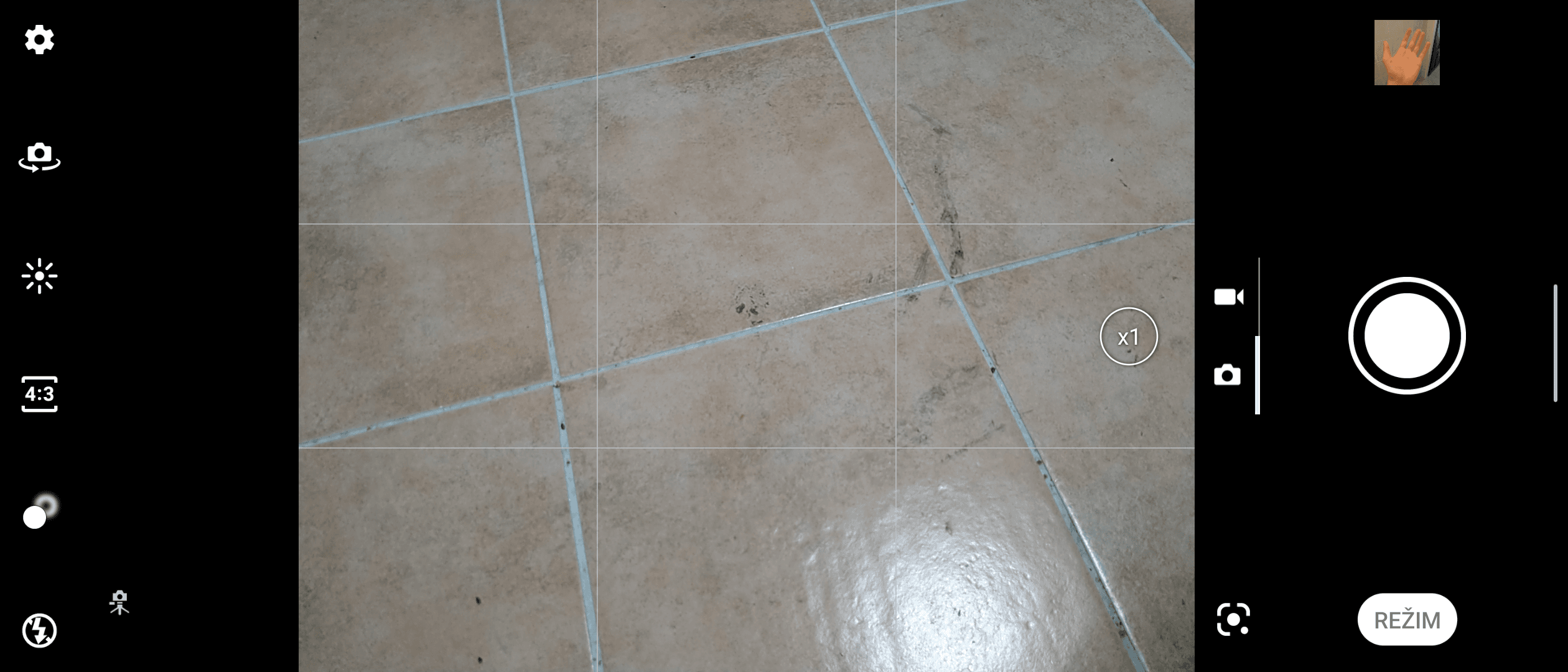 Po prvním spuštění jsem vůbec nevěděl, co se děje. Obvyklé přepínače, které má většina androidových výrobců plus minus na stejném místě, zde nenajdete. Pokud držíte telefon na šířku, máte hned pod palcem spoušť, která je ale strašně pomalá, a režimy, z nichž nejčastěji budete používat asi noční režim.