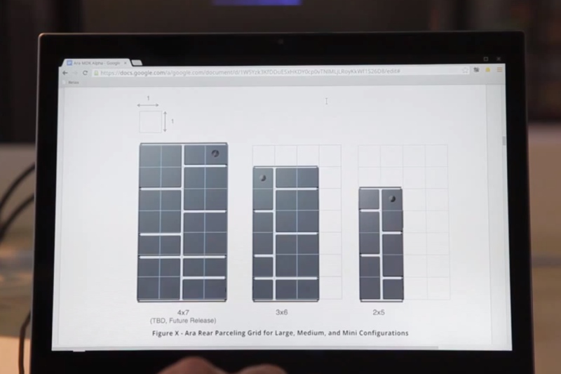 Aktuální video, které ukazuje dění kolem celého projektu Ara, ukazuje, že modulární smartphone bude ve třech velikostech: velký, střední a malý. Dokonce vidíme rozmístění jednotlivých „LEGO“ částí, modulů. Ty jednoduše zasunete po kolejničkách na místo a elektropermanentní magnety je pak pevně udrží na svých místech, což budete ovládat přes aplikaci v případě potřeby výměny modulů.