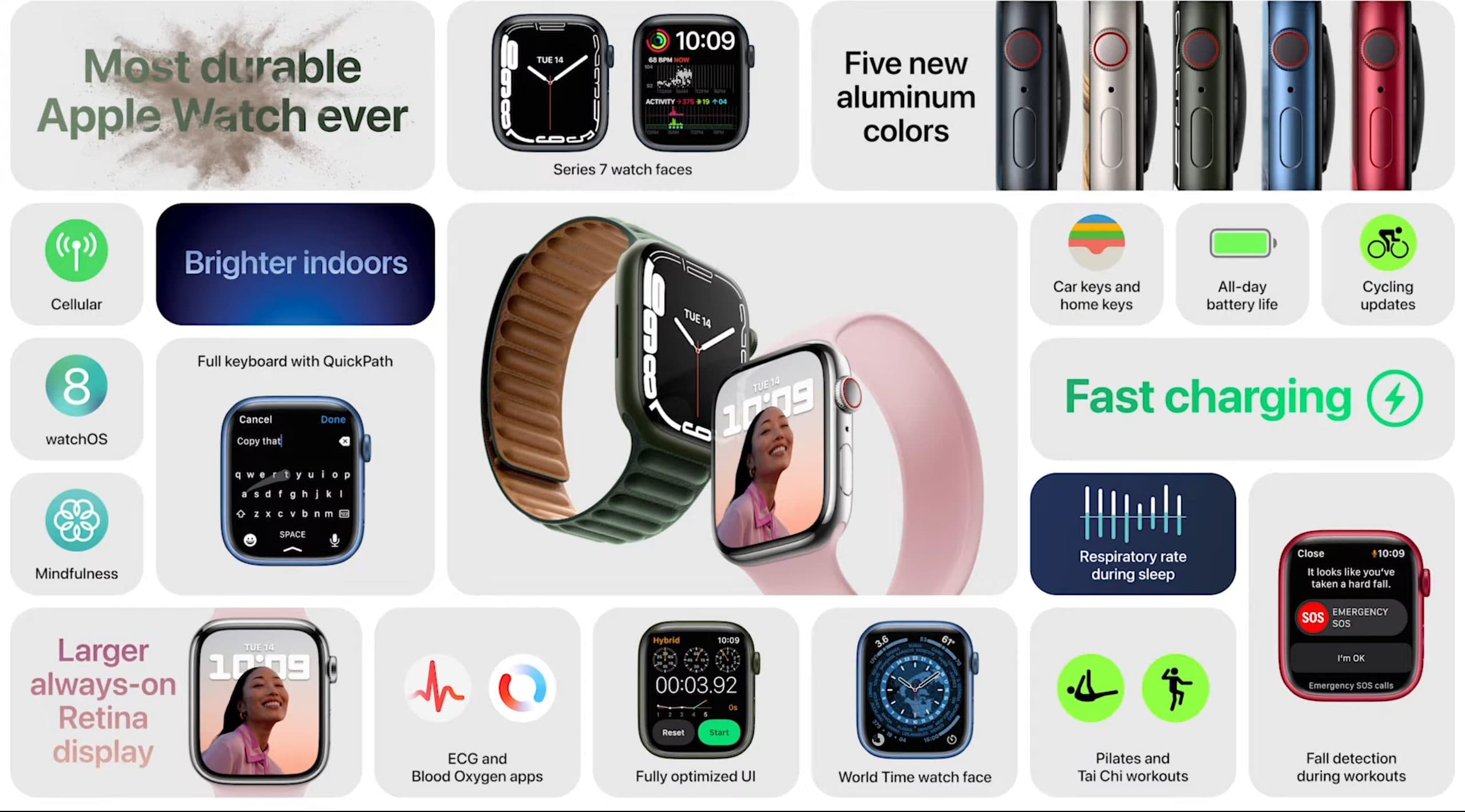 Stejně jako nejsou letošní iPhony 13 v ničem zásadně revoluční, nejsou ani chytré hodinky Watch Series 7. Jedná se ale o velmi povedenou evoluci předchozího modelu s lehce přepracovaným designem, novým systémem watchOS 8 a samozřejmě novými funkcemi.
