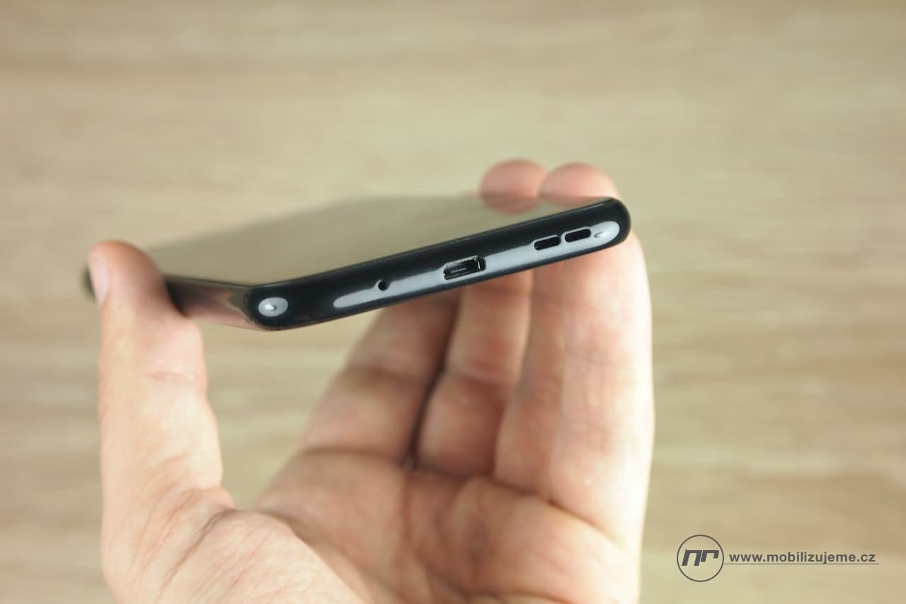 Nahoře najdeme 3,5mm jack (palec nahoru), vlevo oddělený slot na dvě nanoSIM a jednu microSD kartu, které lze měnit i za chodu (další palec nahoru), tlačítko pro spuštění Google Asistenta, dole microUSB konektor, mikrofon a reproduktor, za který dávám palec dolů. Ale o něm až později. Vpravo pak najdeme kolébkovou regulaci hlasitosti a vypínací tlačítko, ve kterém je chytře zabudovaná notifikační LED, což dodává telefonu šmrnc.
