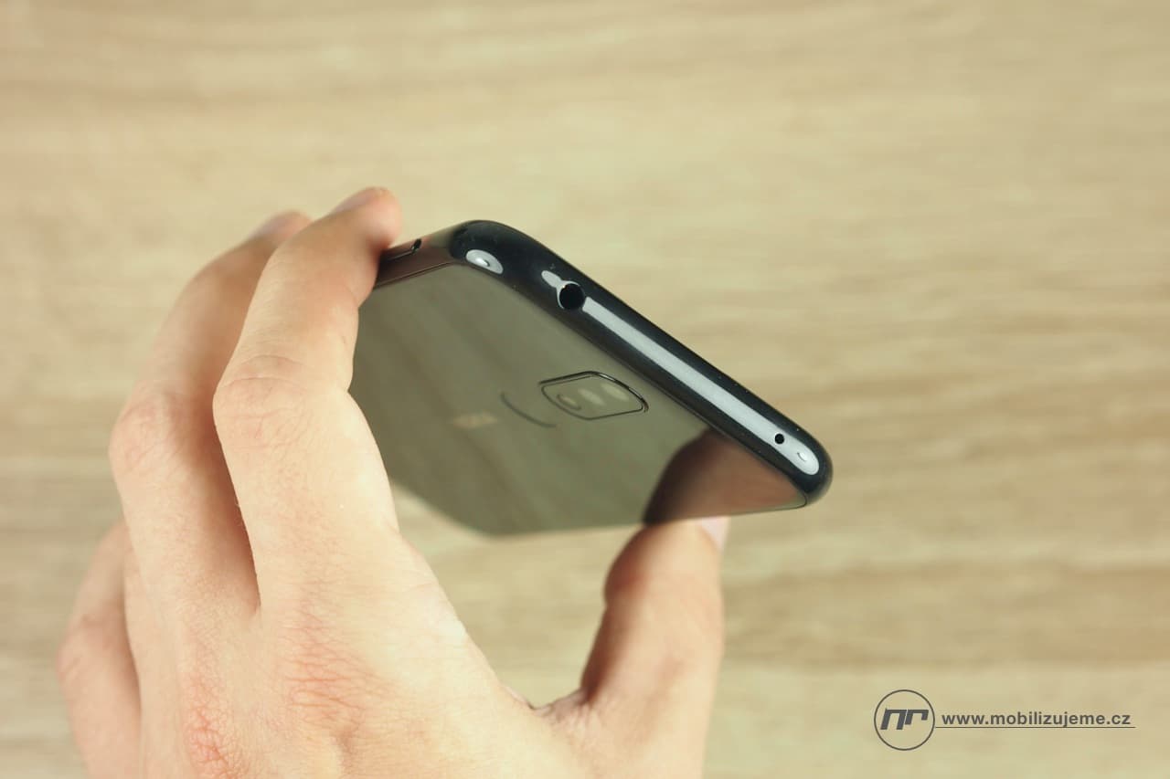 Na zadní straně vystupuje modul se dvěma fotoaparáty a LED bleskem. Pod ním najdeme čtečku otisků prstů, ale ta je umístěna kvůli modulu fotoaparátu až nesmyslně dole, takže intuitivně budete matlat čočku fotoaparátu. Čtečka umožňuje probuzení telefonu a reaguje spolehlivě a rychle i s lehce zpocenými prsty. Celkový dojem z konstrukce je slušný, životnost rámečku je otázkou, jinak se však jedná o bytelný kus.