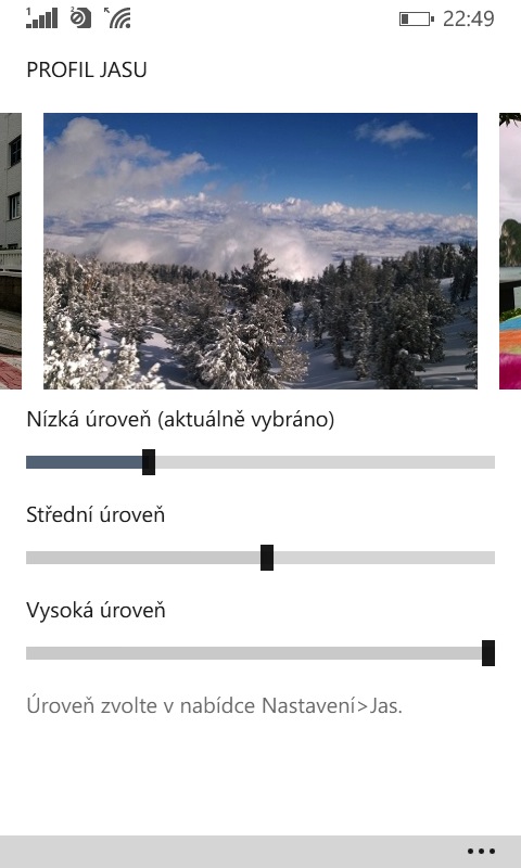 Na jednu z pozic si nejspíše nastavíte přepínání intenzity podsvícení a v případě potřeby jej zvýšíte, nebo snížíte. Ani nejvyšší jas však nedokáže přímý sluneční svit přesvítit a uživatel tak musí hledat správnou pozici telefonu častěji, než by mu bylo milé. Jeden plus však displeji přeci přiznat musíme: kryje ho odolné sklo Gorilla Glass, což u nejlevnějších přístrojů rozhodně není samozřejmost.