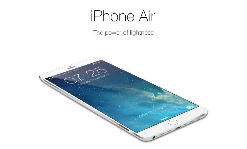 S touto informací přišel jihokorejský portál ET News s odvoláním na čínské zdroje. Nový iPhone se prý bude jmenovat „iPhone Air“ a to zejména díky jeho tloušťce – ta se smrštila oproti iPhonu 5 a 5S o 1,6 milimetru – konkrétně ze 7,6 mm na pouhých 6 milimetrů. iPhone 5C je ještě mnohem „objemnější“ – jeho tloušťka činí 8,79 mm.