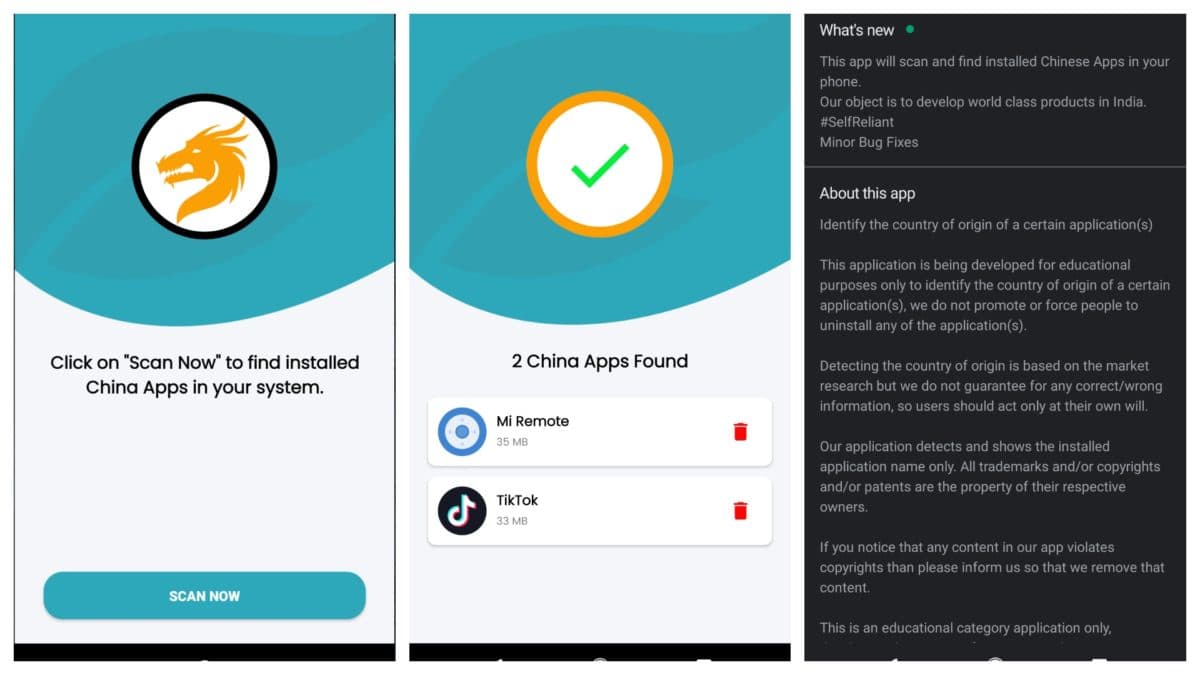 Vývojáři z indického studia skrze startup vytvořili úspěšnou aplikaci Remove China Apps, která pomáhá v telefonu identifikovat a odstranit potencionálně škodlivé aplikace, které mají svůj původ pouze v Číně.