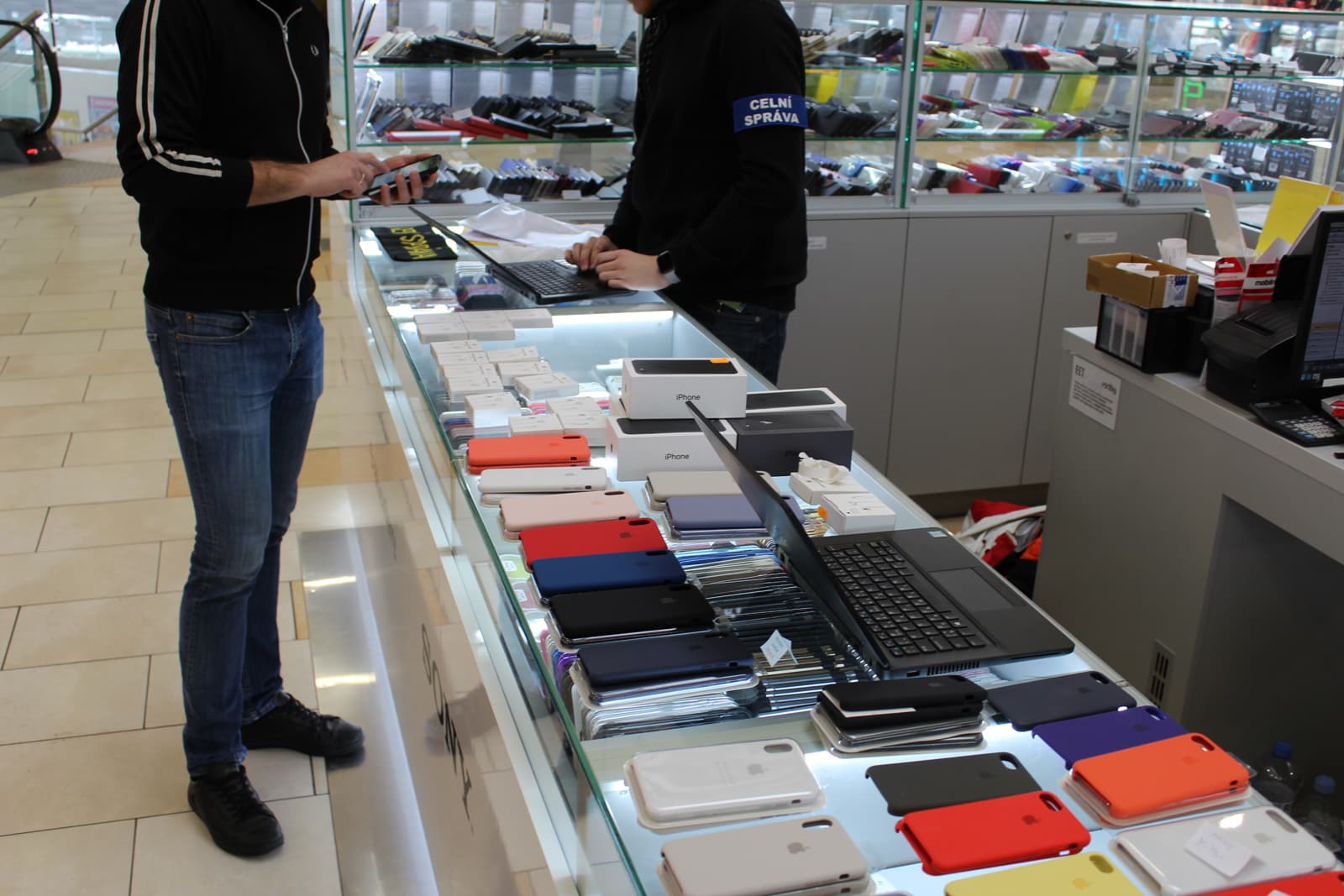 Celní správa České republiky a Finanční správa Slovenské republiky uskutečnily v pondělí 4. února zátah na 21 podezřelých prodejen a prodejních subjektů, povětšinou ve formě stánků, které měly prodávat padělané produkty značky Apple.