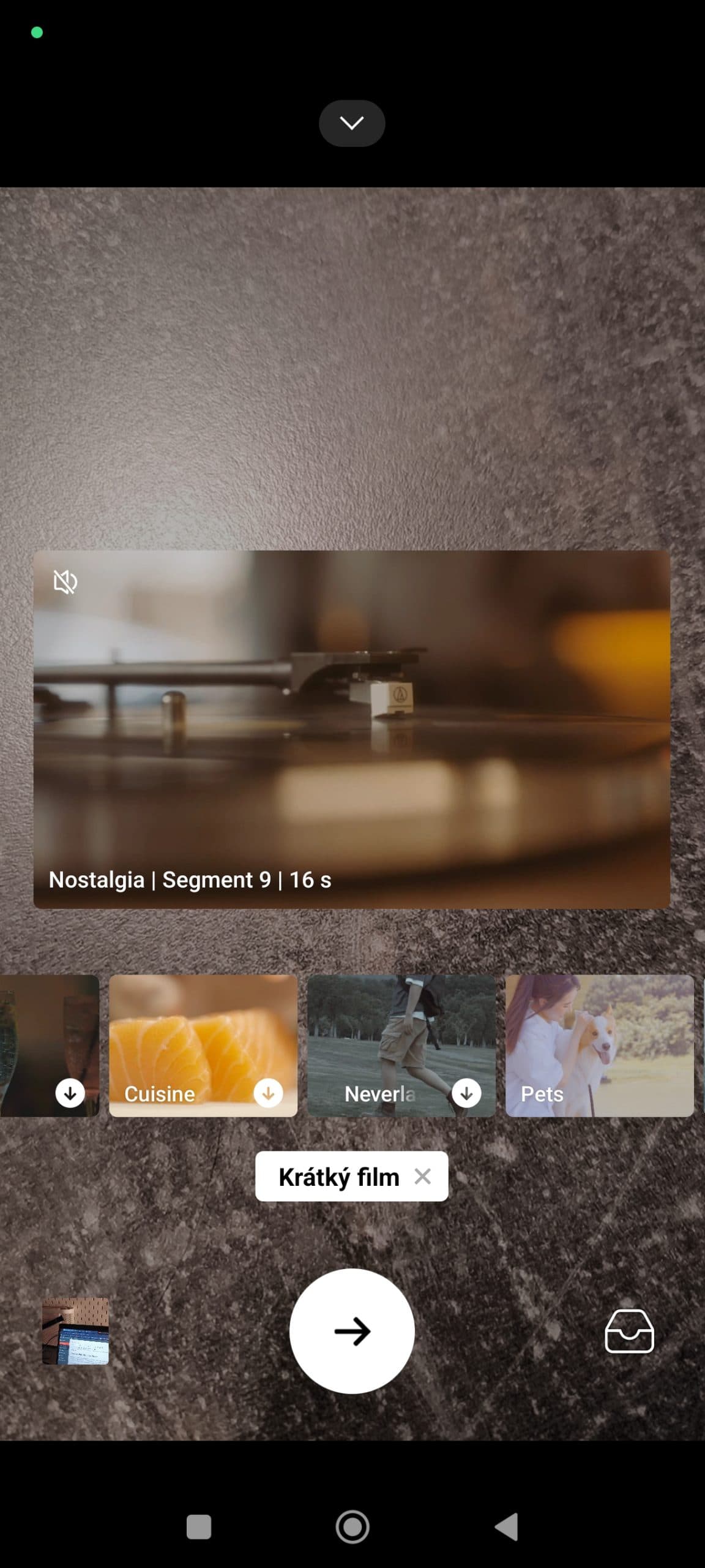 Krátký film vám pomůže natočit sestříhaná videa. V nabídce je několik šablon, které si ale musíte stáhnout. Opomenout nesmíme ani duální video. V jeden moment se zapne přední i zadní kamera.