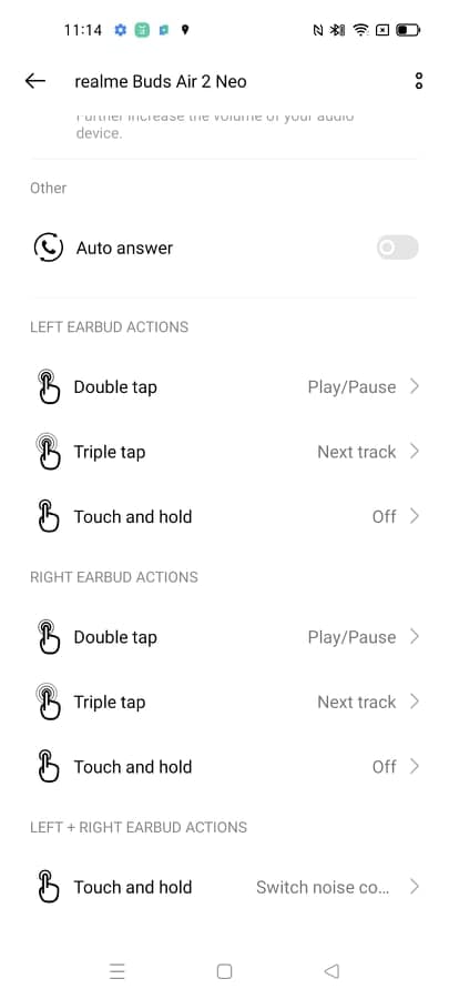 V aplikaci Realme Link lze nastavení ovládání ještě poupravovat (a třeba i převést do normálu), ale aplikace pro Android ani pro iOS Buds Air 2 Neo nevidí a v databázi je nemá. Perfektní spárování zpřístupnil až telefon výrobce s Realme UI 2.0.