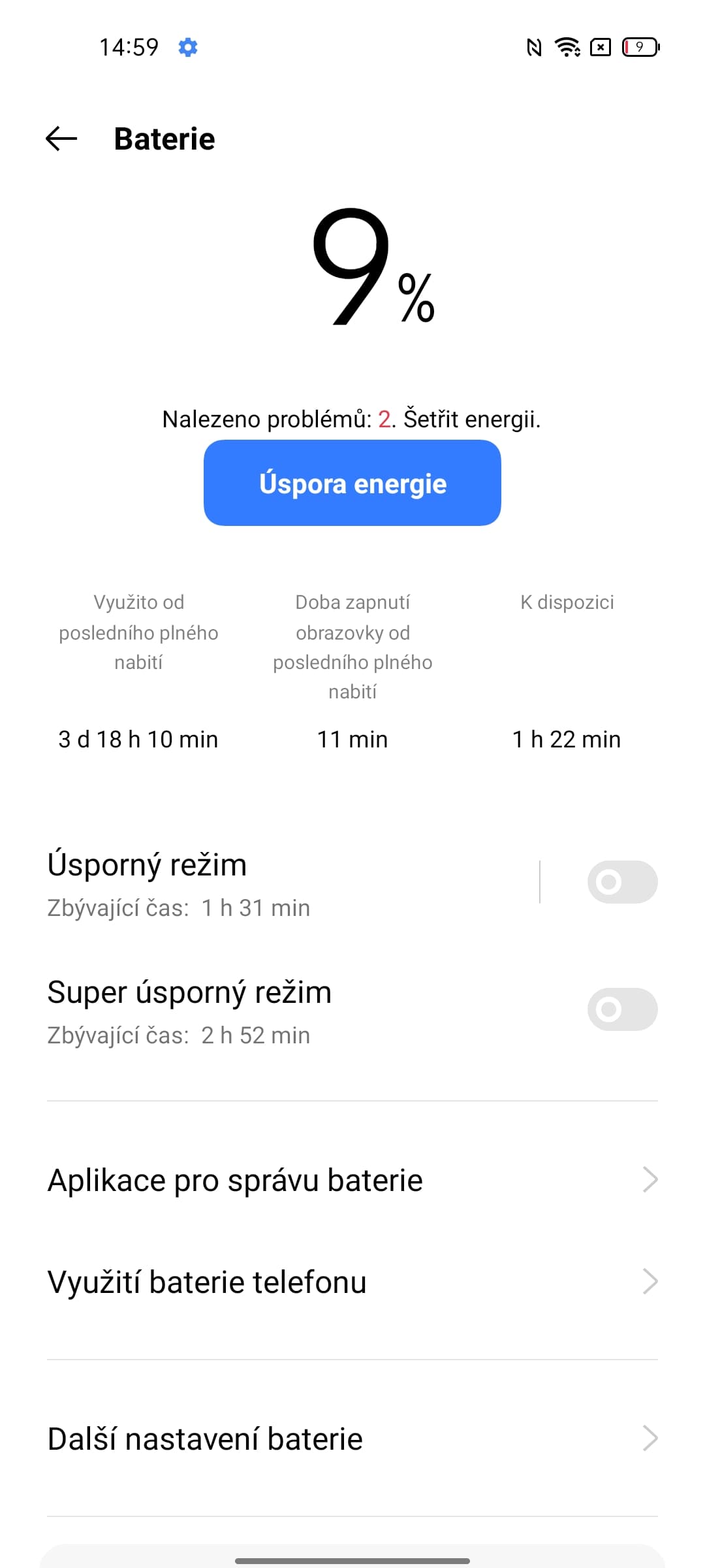 Asi největší slabina se zde skrývá v baterii. Nasazený akumulátor disponuje 4 300 mAh a 66W rychlostí dobíjení. A co to znamená pro zákazníka? Pakliže máte nastavenou adaptivní obnovovací frekvenci displeje, tak při vyšší zátěži baterie již budete v podvečer hledat nabíječku. Při šetrnějším užití se v klidu dostanete na jeden den. Výdrž je tedy opravdu tristní. Alespoň, že na plnou kapacitu se dostanete za zhruba hodinku a pár minut.