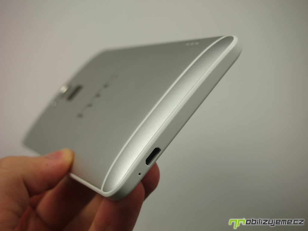 Vše se ale rázem změní v okamžiku, kdy telefon obrátíme zády vzhůru. Zadní odnímatelný kovový kryt sice také nevrže, má ale zřetelnou vůli kolem čočky fotoaparátu. Za vše může jeho prohnutý tvar, který je zkrátka prohnutější, než by bylo zdrávo, a právě v místě vrcholu paraboly se tak tvoří malá skulinka. Člověk se tak musí chtě nechtě ptát, proč se zadní kryt Maxe vůbec dá snímat. Ano – nalezneme pod ním sloty na SIM kartu a microSD kartu. Baterii však vyjmout nelze a oba dříve zmíněné sloty by se v klidu vešly i na boky přístroje jako na modelu One. Například levá hrana zůstává s výjimkou odjišťující páčky pro sejmutí krytu trestuhodně prázdná – spoušť fotoaparátu zde nehledejte.