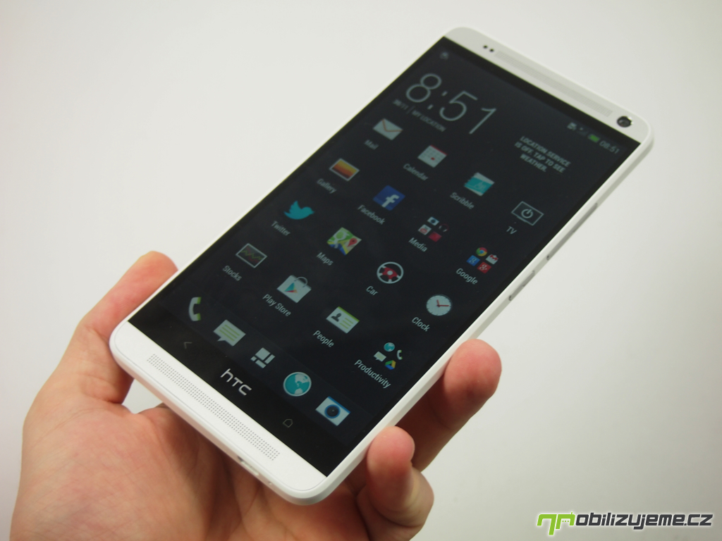 Velikost přístroje bývá skutečně někdy na překážku. Neplatí to jen pro telefonování, kdy s plackou u ucha vypadáte trochu jako Mickey Mouse. Když se k šestipalcové velikosti připojí ještě prazvláštně umístěné tlačítko Home (místo vprostřed ho nalezneme napravo), na problém je zaděláno. Ať už držíte telefon v kterékoli ruce, k senzorovým tlačítkům musíte svůj palec buď nepřirozeně natahovat, anebo ho lámat v ostrém úhlu. V extrémním případě na kýžené tlačítko vůbec nemusíte dosáhnout. Tak jako tak se nedá mluvit o bůhvíjakém pohodlí, a tato rovnice má proto jediný výsledek: HTC One Max se nedá pohodlně ovládat jinak než oběma rukama.