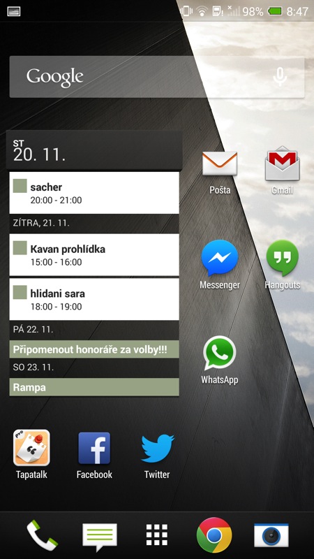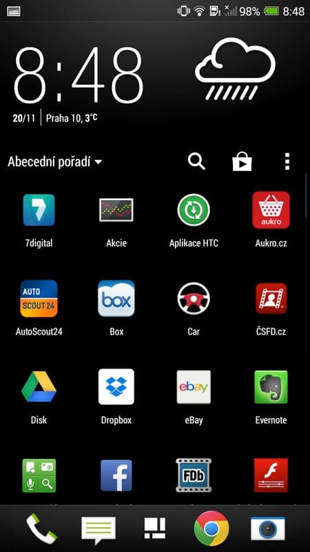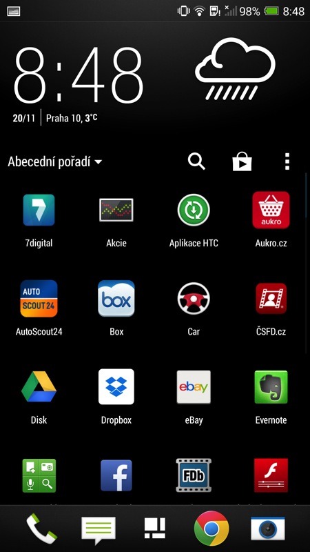 Pokud jste ale zvyklí na čistý Android, řada věcí vás zarazí. Skoro to vypadá, že se HTC snaží zamaskovat v sobě Android tím, že některé klasické postupy převrátí naruby. Tak třeba: seznamem aplikací se nelistuje do stran, ale odshora dolů. Ani po dvou týdnech jsem to nikdy po jeho otevření nezvládl napoprvé dobře.