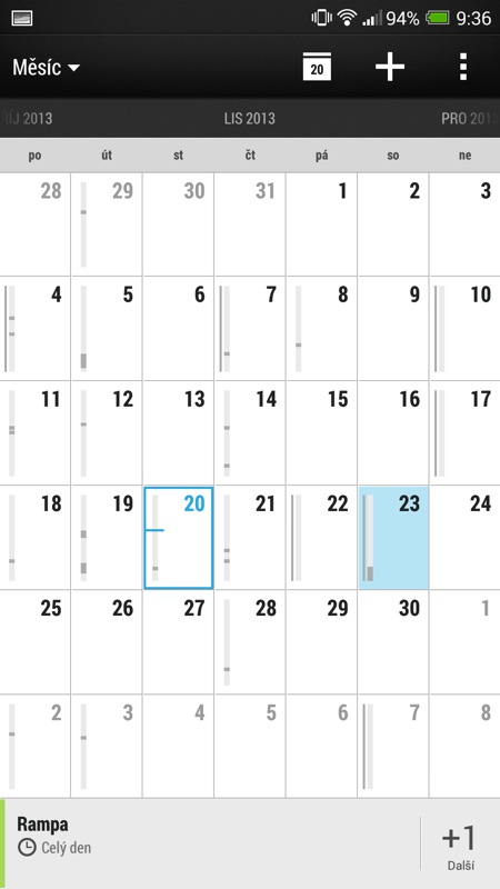 Bohužel, dokud jej nevypnete, bude vám HTC tvrdošíjně jako základní kalendář cpát svůj vlastní nativní HTC kalendář navázaný na HTC účet. Další drobná moucha se váže k označení synchronizovaných kalendářů: na rozdíl od jasných barev, které Google používá ve webovém zobrazení kalendáře jde rozlišení na HTC One Max spíš do tlumených odstínů. Na první pohled je tak o něco složitější rozlišit, v jakém kalendáři se nacházíte, a změnit jejich barvy v telefonu nelze.