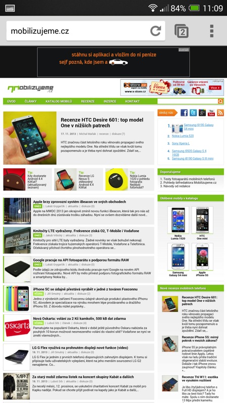 Až vás zábava s ovladačem omrzí, užijete si ji dosytosti i při prohlížení mobilního internetu. Vestavěný browser bez potíží zvládá Flash i rychlé vykreslování těch nejsložitějších stránek. Grafická nadstavba Sense však paradoxně oproti rozšířením z pera jiných výrobců nenabízí v aplikaci prohlížeče žádné „extrabuřty“, které by jeho funkcionalitu obohatily. Za sebe bych hlasoval například o lištu s tlačítky Zpět, Vpřed a vstupem do záložek. Místo na displeji by se u HTC One Max rozhodně našlo.