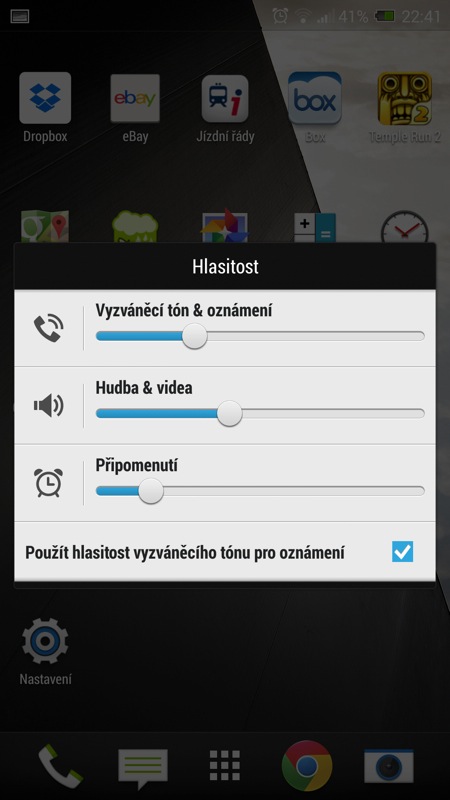 Pokud voláte málo, horší kvalitu zvuku nějak přes srdce přenesete a možná vám větší radost udělají notifikační vychytávky. Například funkce, která vybudí hlasitost zvonění, pokud máte telefon právě v kapse. Funkce je to bezesporu užitečná, nicméně během testování nefungovala pokaždé. Co však nezklame nikdy, to je celková hlasitost vyzvánění. I když jsem v nastavení hlasitosti nikdy nepřekročil polovinu stupnice, vždy jsem zvonění HTC One Max spolehlivě slyšel a bez uzardění ho můžu označit za nejhlasitější telefon, který jsem kdy držel v ruce.