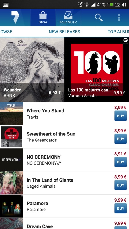 7digital: obchod s hudbou, kde po registraci můžete volně nakupovat při cenách kolem 9 Euro za desku